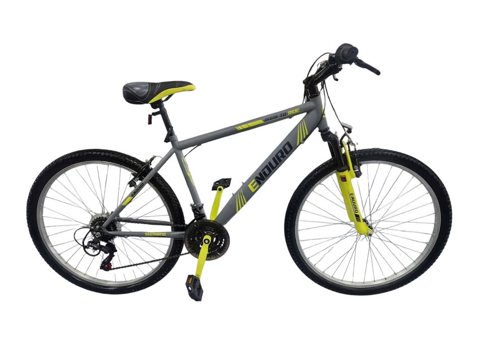 Enduro Mountain Bike Yellow 17" frame 18 Speed Shimano Front Suspension 26 Inch wheel perfect working condition, great physical condition, well looked after, slight usage wear but nothing that effects performance or use