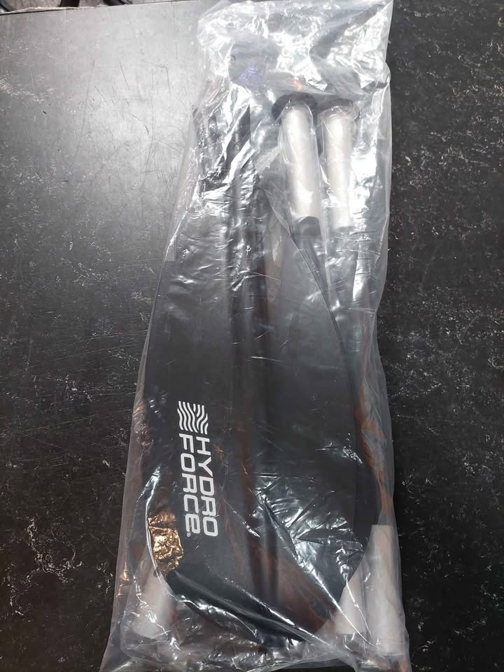 Take your adventures to the next level on a lake, river or the ocean in the Hydro‑Force™ Cove Champion™ X2 Inflatable Kayak. This set comes with everything you need for a great day on the water ‑ an inflatable kayak, lightweight 230 cm (91”) aluminium paddles, an Air Hammer™ hand pump and 2 fins in one convenient carry bag. Designed for quick, convenient and very easy setup, this lightweight two person kayak is simple to inflate using the included Air Hammer™ hand pump. The Inflata‑Shield™ material ensures the kayak can resist punctures, limits stretching and enhancing the boat's performance on the water. Carrying the inflated 2 man kayak to and from the water is a breeze using the wraparound grab rope. The comfortably‑sized cockpit features adjustable inflatable seats with backrests for extra support and a firm rigid inflated floor. This two seat kayak also has plenty of storage space for snacks, extra equipment or any other water necessities thanks to the included storage cord and net. It navigates the water with ease using the two interchangeable fins on the bottom, which are removable to ensure easy and compact storage. Depending on the water conditions, you can customize the fin size to your needs. Easy to use and easy to store, bring out your inner explorer with the Hydro‑Force Cove Champion X2 Inflatable Kayak.