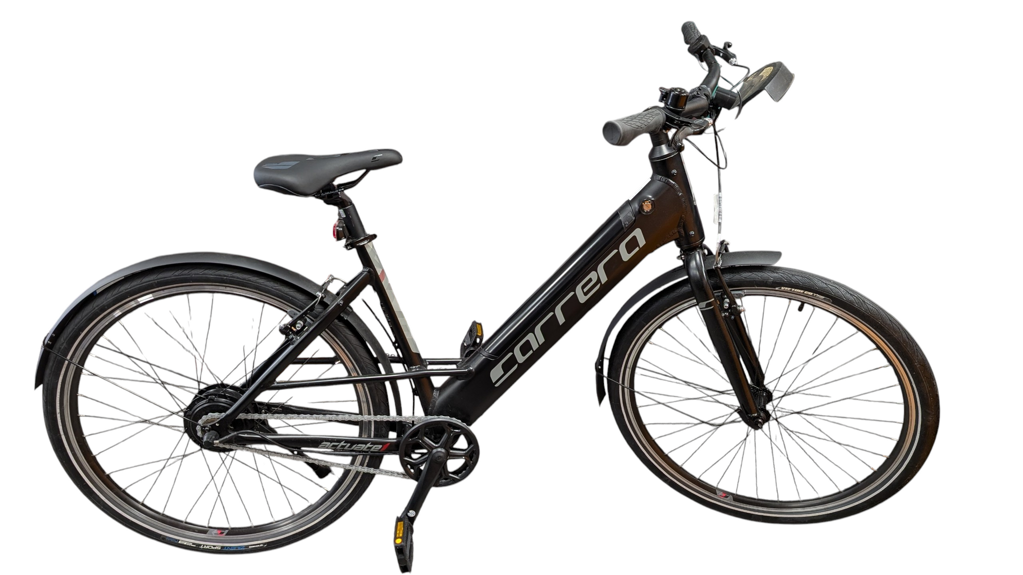 The Carrera Actuate 1 (often referred to as the Lowstep model) is a popular entry-level electric hybrid bike designed for easy urban commuting and casual riding. It is characterized by its step-through frame, making it accessible for a wide range of riders. Motor: 250W Hyena Rear Hub Motor. Battery: 367Wh fully integrated battery (removable for charging). Range: Average of 20–25 miles, with a maximum assist of up to 50 miles on a single charge. Gearing: Single-speed (simplified maintenance, ideal for flatter routes). Braking: Tektro V-brakes for reliable stopping power.