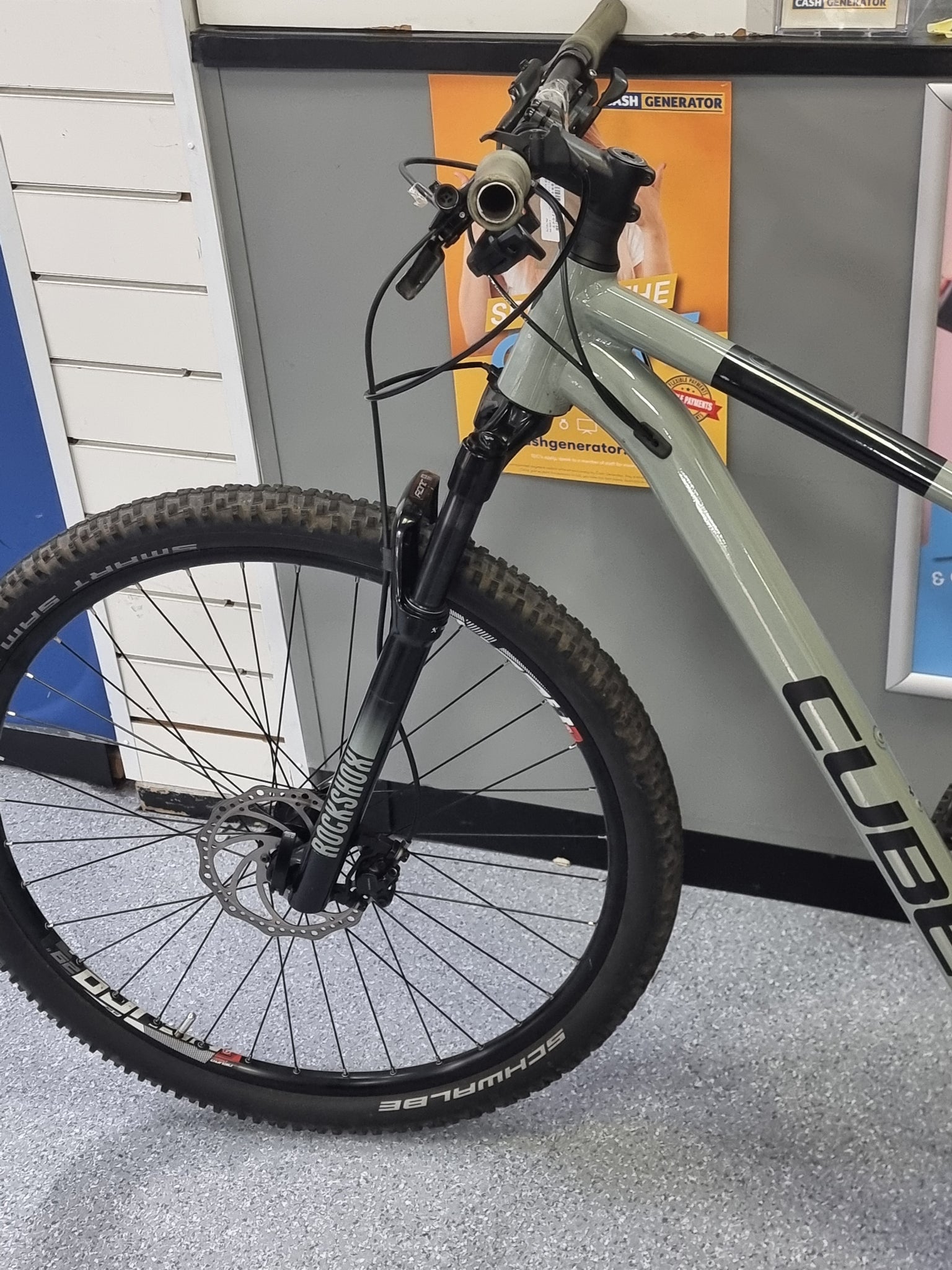 When it comes to value and performance, the Attention SLX raises the bar. Its lightweight aluminum frame showcases smooth welds, integrated mounts for fenders, a rear rack, and a kickstand, as well as a lowered top tube for extra freedom of movement. Premium components like the air-sprung RockShox fork, powerful disc brakes, and smooth rolling Schwalbe Smart Sam tires guarantee a capable ride. Add the SRAM SX Eagle 12-speed drivetrain with its 450 percent range, and you’re equipped for any off-road scenario. Cube Attention SLX Mountain Bike 2024 - Willow Green/Black Speed 16 Frame 19 26 Wheels Cash Generator Bury 101 The Rock Bury Lancashire BL9 0NB - Tel 0161 763 9631 Open 7 days a week Located just next to wilkos Open 9am - 5 30 Mon - Sat Sunday's 10am - 4 pm Call the store for full details