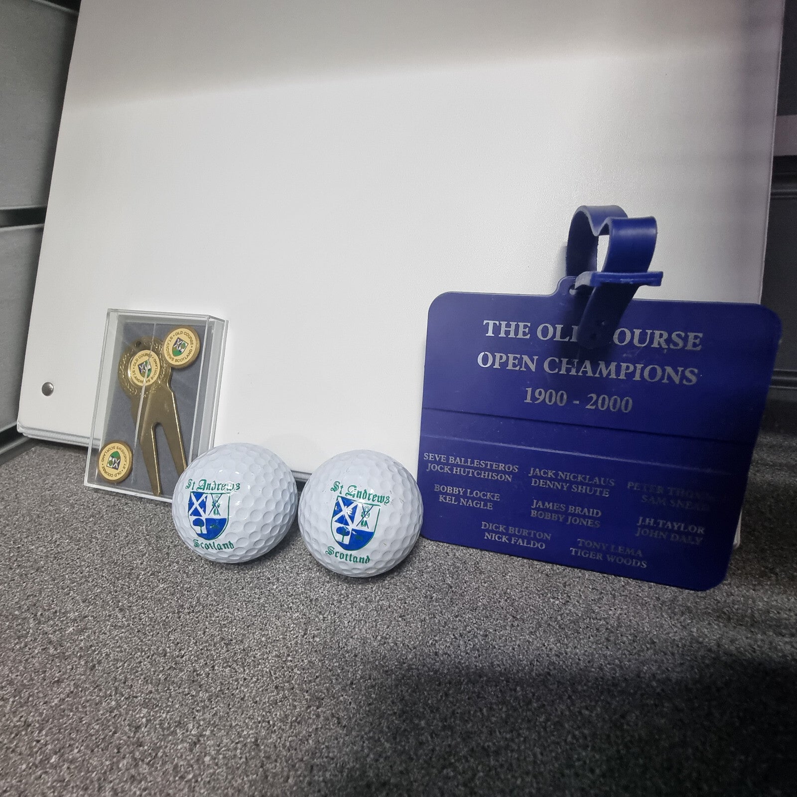 Old Course St Andrews Scotland Golf Divot Tool And 2 Ball Markers Set Golf Bag Tag 'The Old Course Open Champions 1900-2000' 2 St. Andrews Scotland Golf Balls