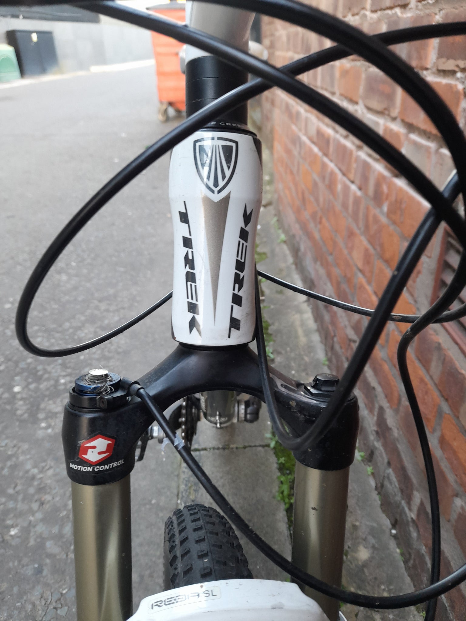 item is in good working order has some cosmetic damage to the seat but does not affect use has some slight marks and scrapes to body due to age and use but is fully functional left brake (Back) has some play in it fully operational and full stops/locks the wheel possible just some air in the hydraulics
