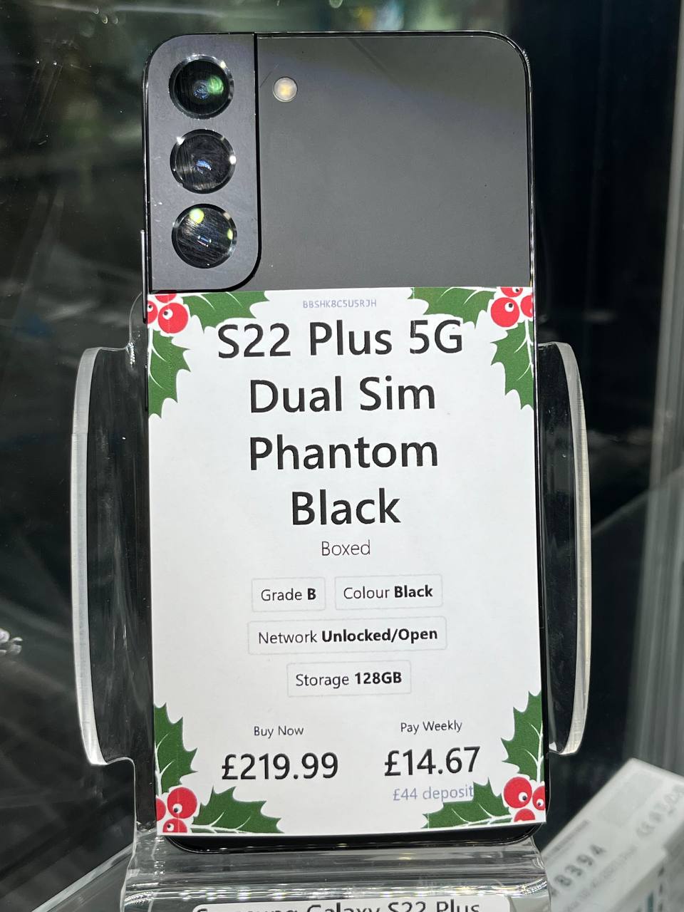 Specifications Manufacturer: Samsung Phone Model: Galaxy S22 Plus Network: Unlocked Grade: B Capacity: 128GB Phone Colour: Phantom Black Main Colour: Black Physical SIM Slots: 2