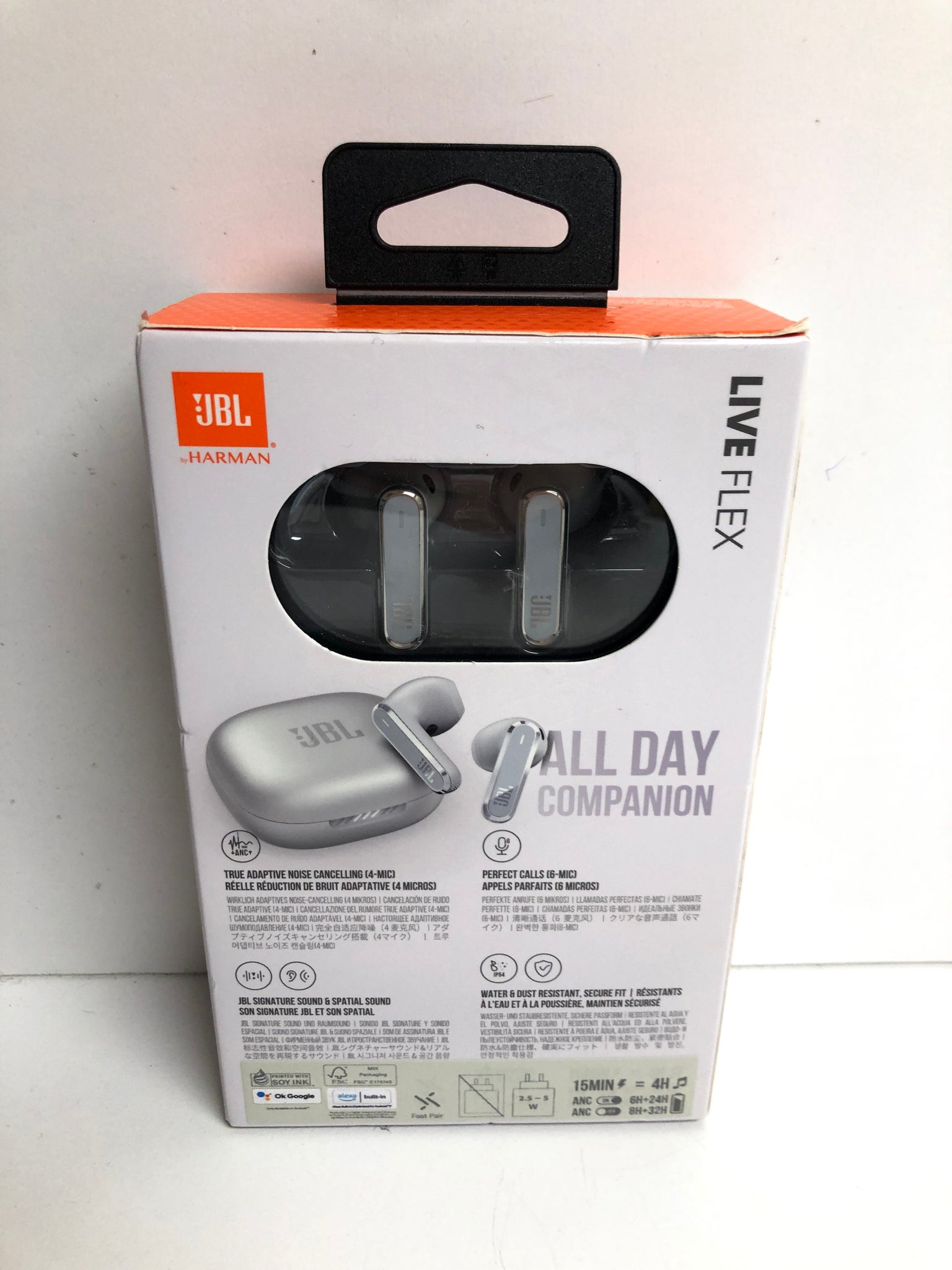 Deep bass, plenty of fun. Your sound wherever you are. The splash and dustresistant JBL Wave Flex earbuds with powerful bass, up to 32 hours of battery life and a secure, comfortable stickopen design are perfect for your daily sound companion. Whether you're out and about in the city or relaxing on the beach, your handsfree calls in stereo quality are always crystal clear, while Smart Ambient technology lets you hear what's going on around you. And if you need an extra boost, you can get two extra hours of battery life in just 10 minutes with the quick charge function. Get the best out of your mixes with highquality sound from secure, reliable earbuds and 12 mm drivers with JBL Deep Bass Sound. The ergonomic stickopen design of the JBL Wave Flex earbuds fits so comfortably you'll forget you're wearing them. Thanks to the stickopen design, you can fully enjoy the music without blocking your ear canal. With a battery life of 8 hours in the earbuds and 24 in the charging box, the JBL Wave Flex offer allday sound enjoyment. And if you need more power, you can get two additional hours of runtime in just 10 minutes with the quickcharging function. still sealed, unused item