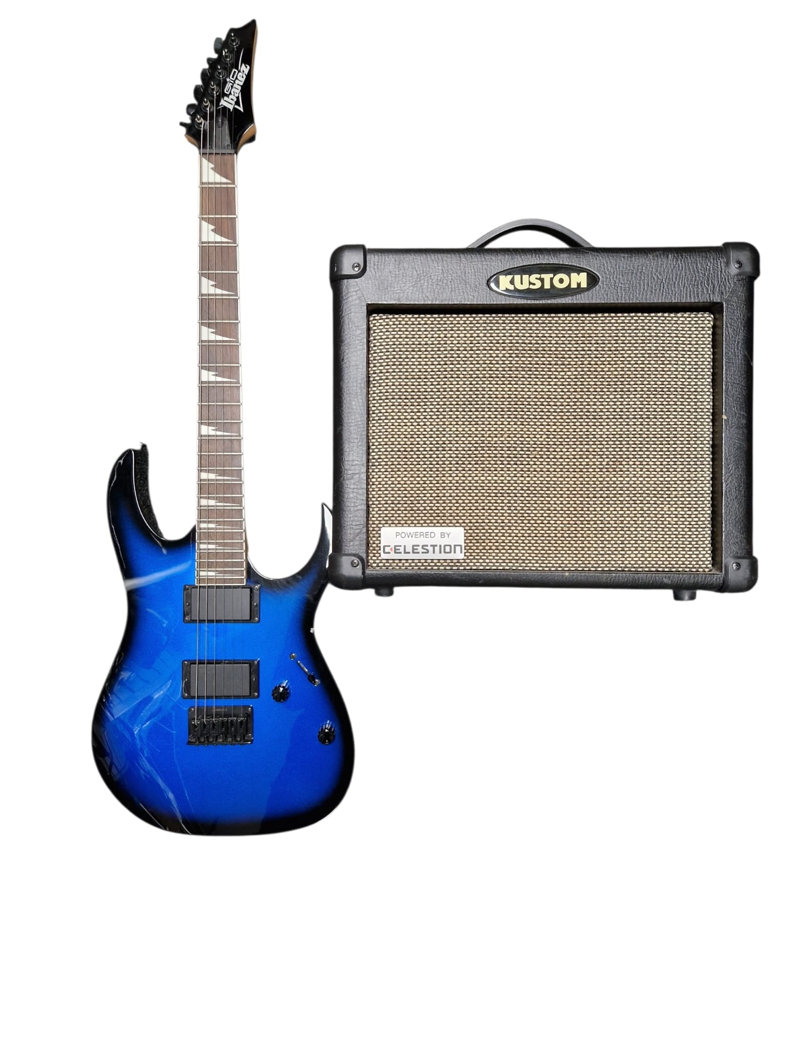 In good condition Ibenze Gio GRG121GX comes with Kustom Arrow 16 Amp and aux cable. Everything tested and in full working order.