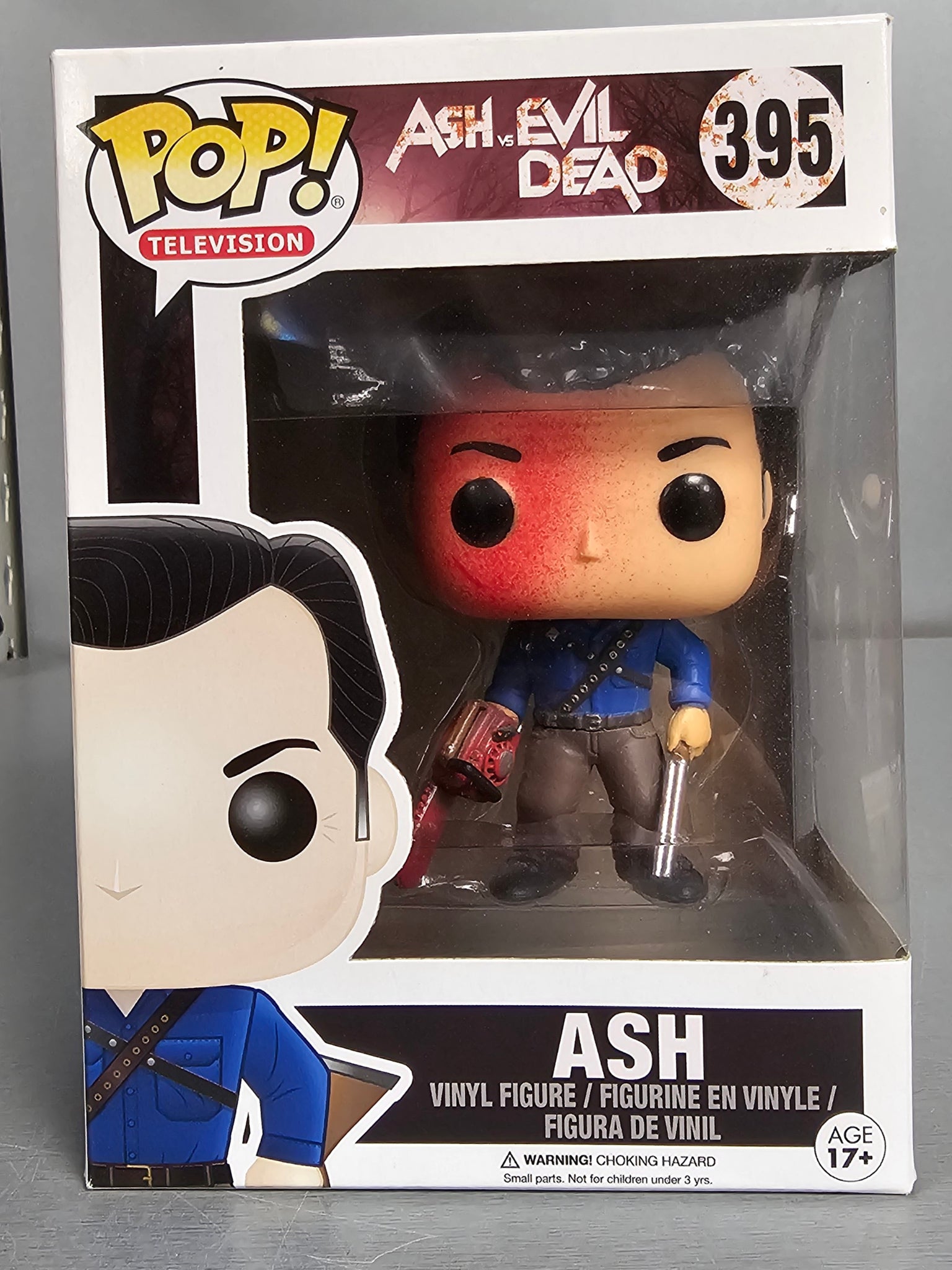 ASH VS EVIL DEAD EXCLUSIVE BLOODY ASH FUNKO POP VINYL FIGURE #395 BRUCE CAMBELL Measures approximately 3 3/4-inches tall. Comes packaged in a window display box. Ages 3 and up