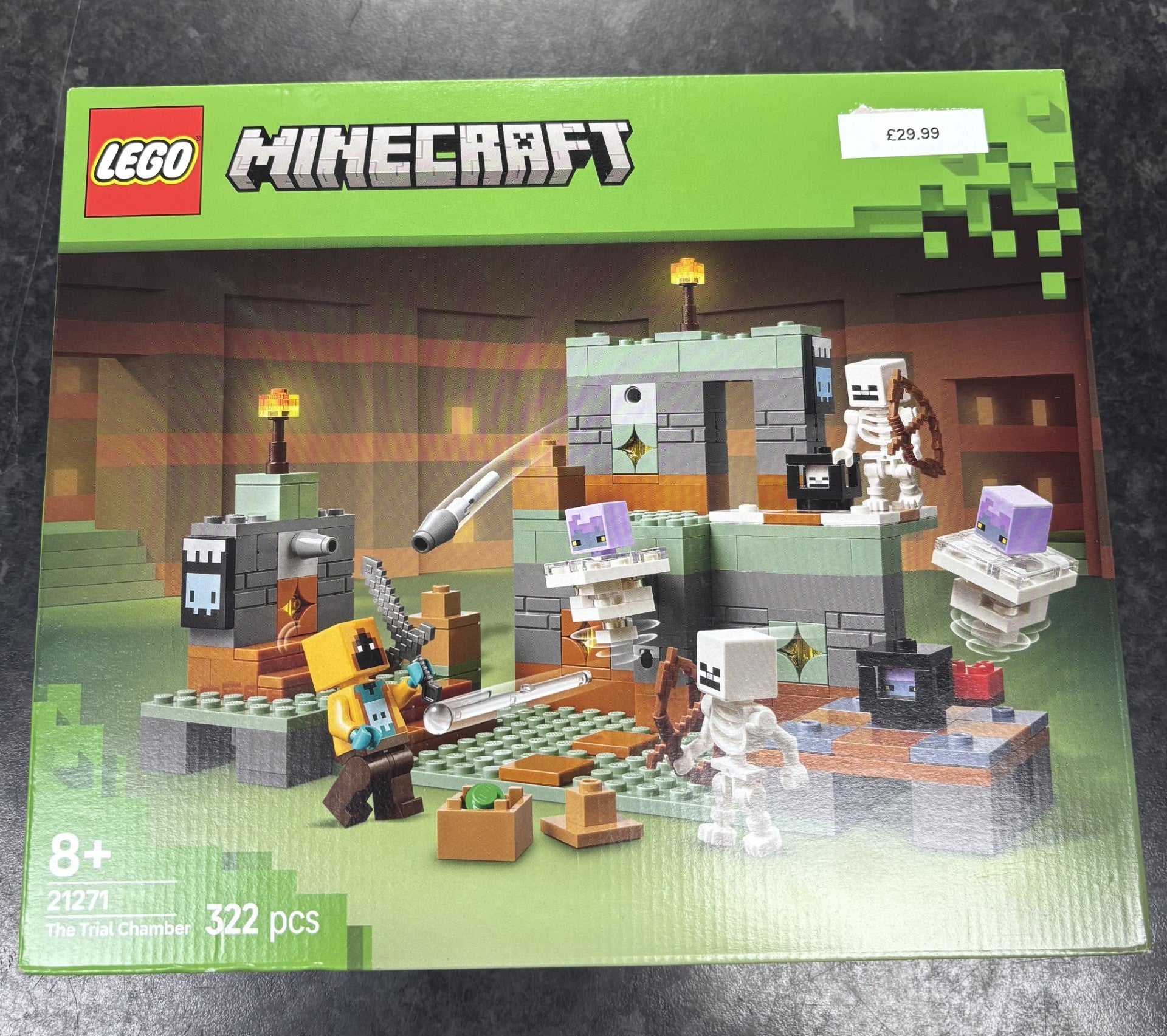 LEGO Minecraft The Trial Chamber 21271 Dive into the thrilling world of LEGO Minecraft with The Trial Chamber (21271), a captivating set designed for children aged 8 and over. This high-quality building toy brings the excitement of the beloved video game to life, offering a hands-on experience that will delight both boys and girls. The set invites young builders on an exhilarating treasure hunt, where they must navigate the perilous Minecraft trial chamber. Inside this immersive set, players will encounter a variety of challenges. The chamber is equipped with two skeleton figures and two breeze figures, ready to test the skills of any adventurer. The Shadow Hoodie minifigure adds an extra layer of intrigue, while the two spawners keep the action dynamic and unpredictable. To heighten the excitement, the set features two flick-fire missile launchers, strategically placed on each wall, and a spring-loaded missile with a hidden trigger behind the rear wall. The treasure hunt wouldn’t be complete without the promise of hidden riches. Three pots, each concealing either an emerald or a diamond, offer the sought-after treasure that players must discover. For added play possibilities, a room at the back of the set is furnished with a bed and table, providing a perfect spot for characters to rest and strategise. For a modern twist, the LEGO Builder app enhances the building experience by allowing kids to zoom in, rotate models in 3D, and track their progress. This digital feature ensures that the fun continues beyond the physical set, offering endless opportunities for creativity and exploration. Embrace the adventure and let your imagination run wild with LEGO Minecraft The Trial Chamber. Price is for single item. Multiple items may be shown. Each sold separately.
