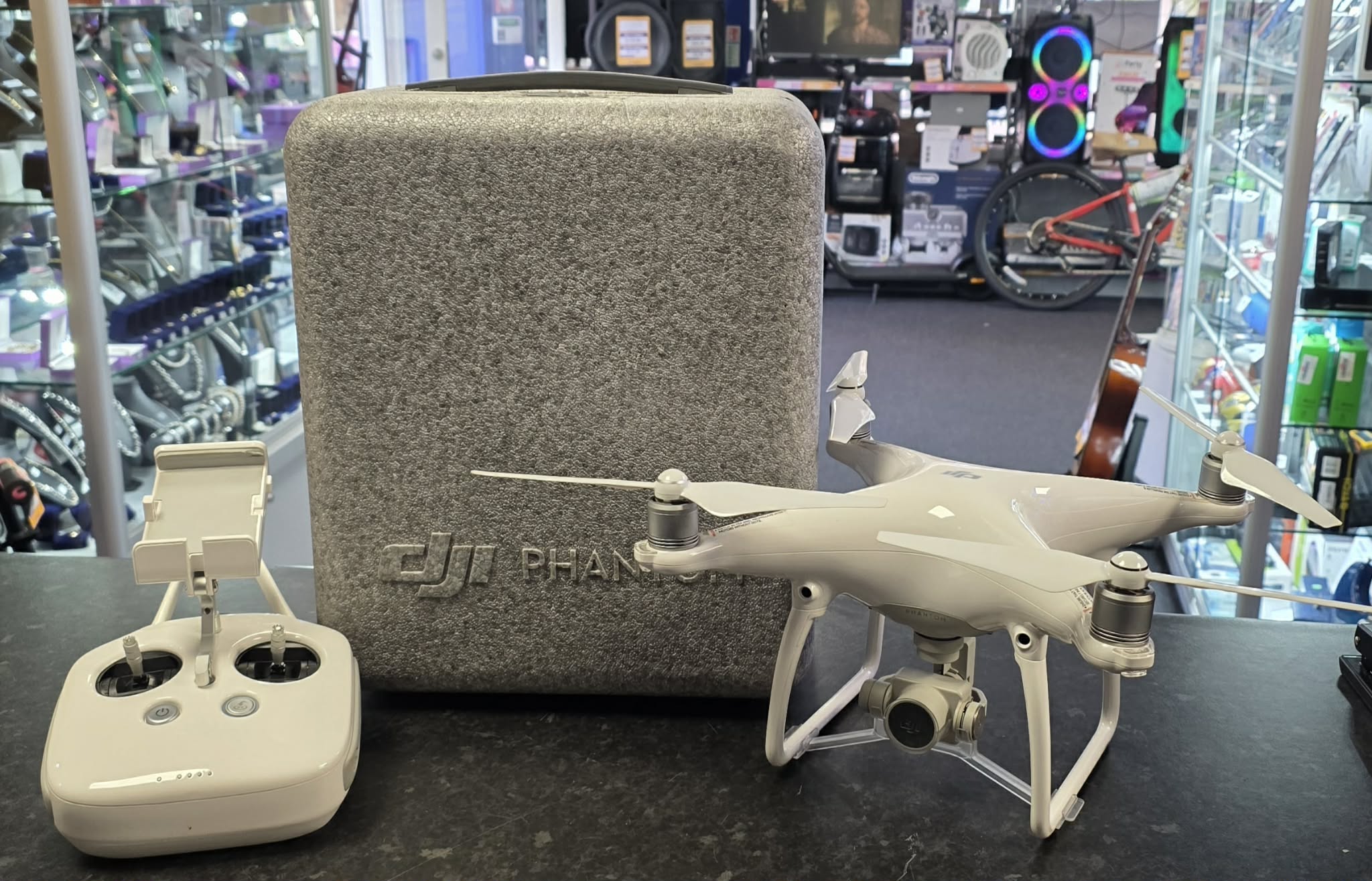 Here we have a DJI Phantom 4 drone in good condition with controller, 2 official batteries and 2 sets of blades. ***** For any queries please contact our Chorley store direct Mon-Sat at 01257 752333.
