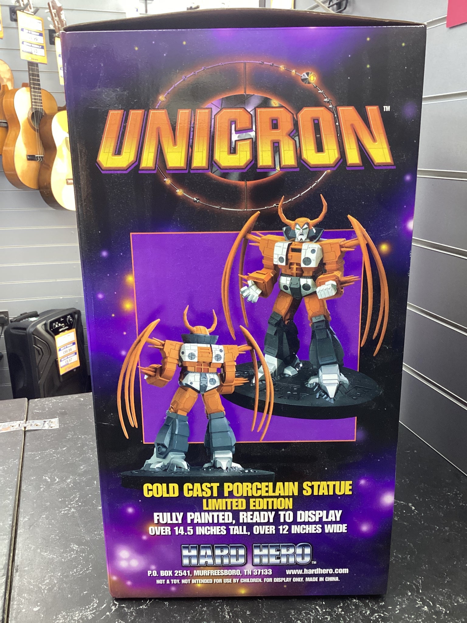 Unicron Statue Transformers Movie 1986 Limited Diamond Select 568/1986 USA G1. Incredibly detailed statue by Diamond Select Toys featuring Unicron, Arcee, Hot Rod, and Daniel. Sculpted by Art Asylum and is limited to 1986 worldwide. Comes with a COA and hand numbered base. Measures approximately 9". Very Rare and sought-after statue that would look amazing in any Transformers collection!
