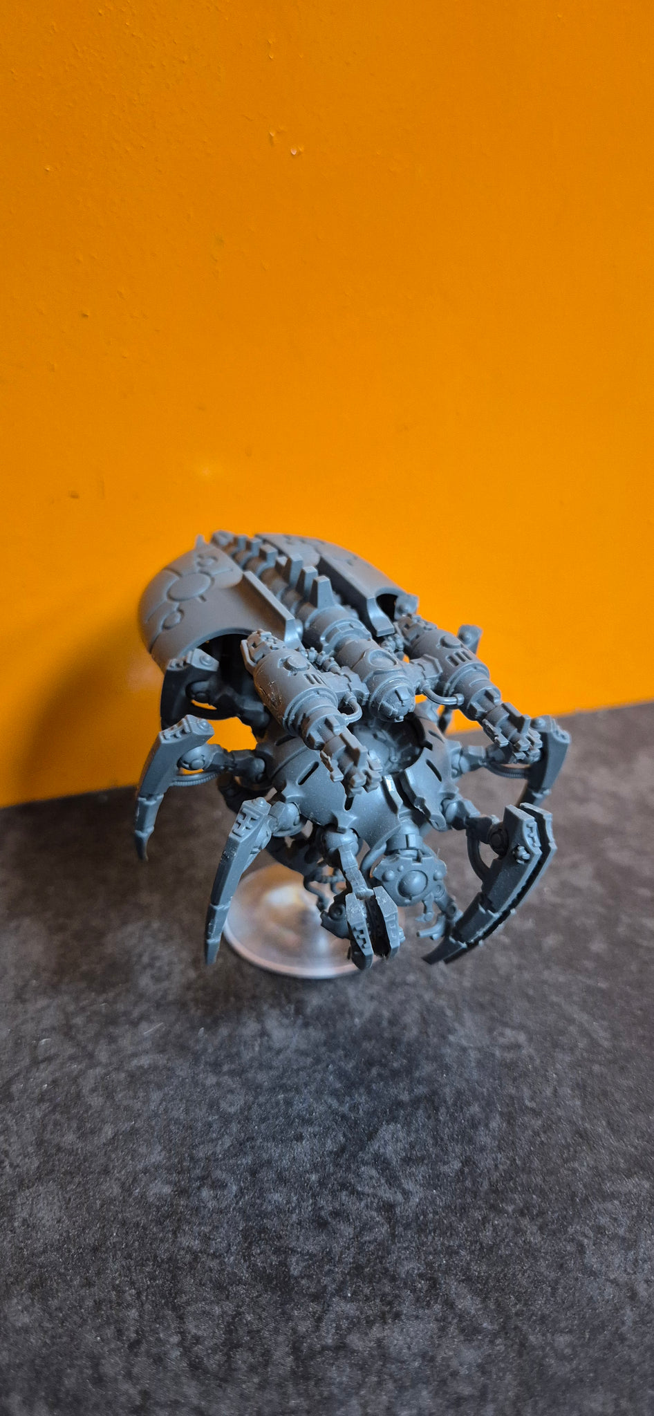 Unlike their Necron masters, Canoptek Spyders never sleep, but while away the aeons servicing the structures of their Tomb World. Though the Canoptek Spyder is essentially an automated drone, it is still a formidable foe when the situation demands. Any enemy foolish enough to stray within reach of the Canoptek Spyder will have flesh scoured from bone by an array of mechanical tools and pincers. If a triad of Canoptek Spyders operate together, one takes overall command, harnessing the processing capacity of the others to create a supermind far greater than the sum of its parts. This hyper-efficiency is passed on to all Canoptek Wraiths and Canoptek Scarabs in the immediate vicinity, allowing a co-ordinated and precise response to any threat - and ensuring the safety of their slumbering masters. When it comes to ferocious mechanical constructs, you can't get much nastier than a Canoptek Spyder. If it isn't tearing apart enemy infantry or tanks with an array of hooks and blades, then it can be used to repair your damaged vehicles. The icing on the cake (or the chip on the circuit board - whatever the Necron equivalent of cake is) is that, even in the heat of battle, it can spawn Canoptek Scarabs to boost your war efforts and irritate your foes. This multi-part plastic boxed set contains 30 components with which to build one Necron Canoptek Spyder. This kit comes with two ball socket stems and one large flying base.