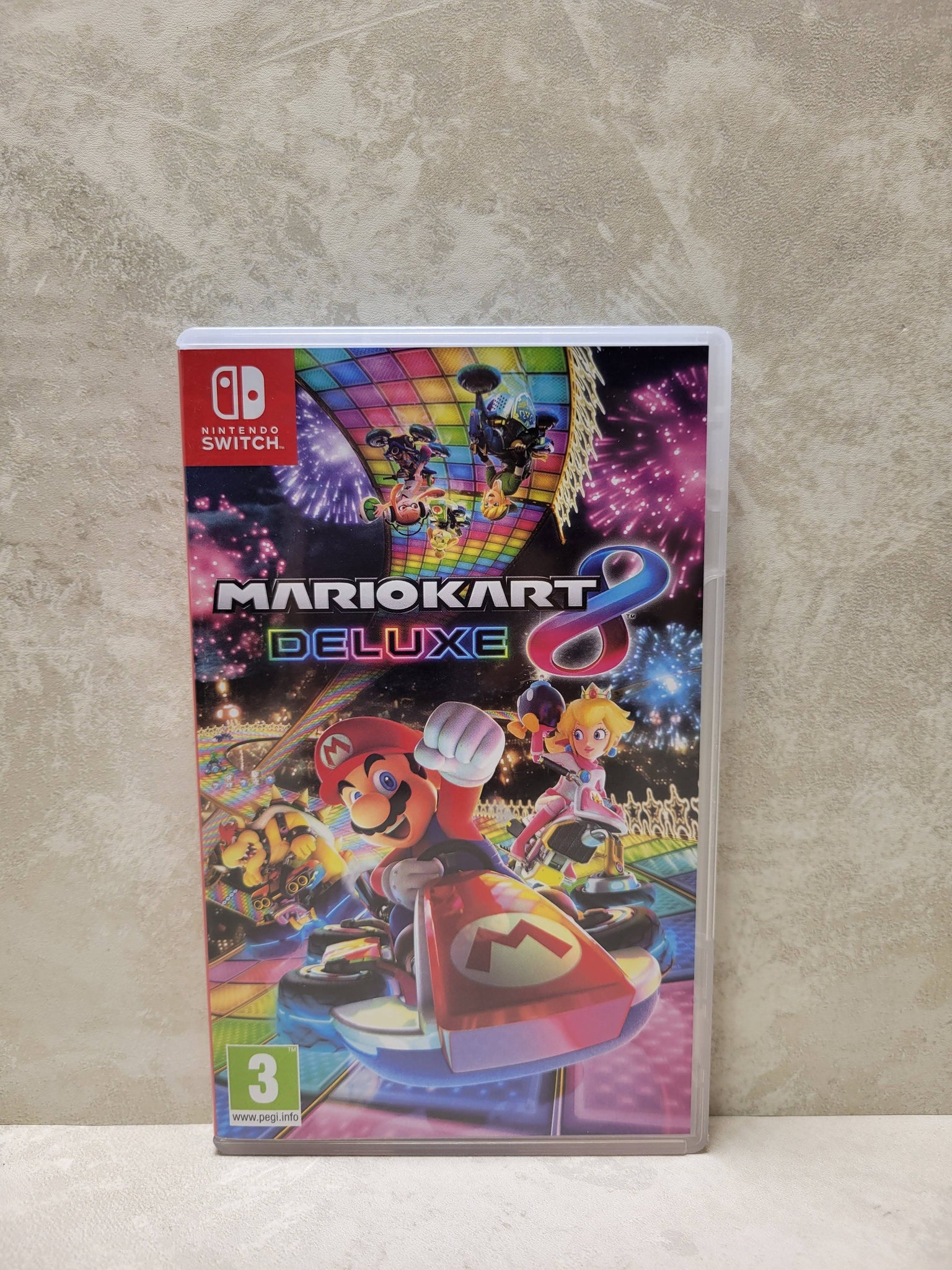 Get ready to race with MarioKart Deluxe 8 for Nintendo Switch! This exciting game brings the beloved Mario Kart series to life with stunning graphics and thrilling gameplay. Choose your favorite characters from the Mario universe and hop in for a fun-filled racing experience. MarioKart Deluxe 8 features a wide variety of tracks, including old favorites and new designs. Players can race on items like mushrooms and shells to get ahead of their friends or try out different vehicles for unique experiences. With up to 12 players online, you can challenge your friends or join players from around the world. The game also offers new modes and enhancements like Battle Mode, where you can compete in fun mini-games such as Balloon Battle and Coin Runners. With a range of customization options, build your kart with various parts to improve your speed or handling, making each race feel fresh and exciting. Whether you're a long-time Mario Kart fan or new to the series, MarioKart Deluxe 8 for Nintendo Switch provides hours of entertainment for players of all ages. Grab your controller, pick your character, and take on the competition today!