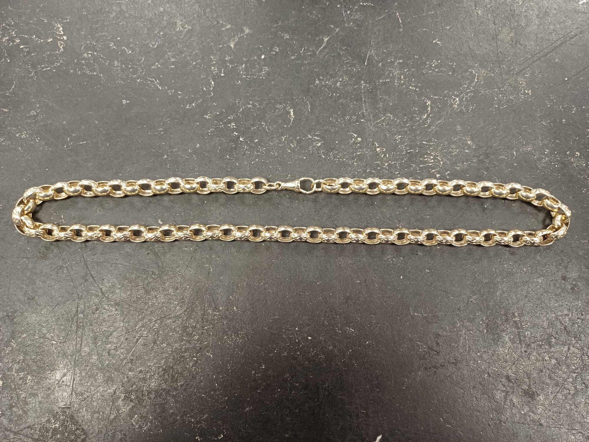 9ct Gold Belcher Chain Necklace 💎 🌟 Timeless Luxury 83.50g, 24" 9ct gold belcher chain. Sturdy, elegant links create a sophisticated look, perfect for everyday wear or special occasions. 💻 Key Features: - 9ct Gold: Premium quality. - Belcher Chain Design: Classic, stylish. - 83.50g Weight: Substantial feel. - 24" Length: Sits below collarbone. 🔌 Extras: - Secure clump closure - Polished finish