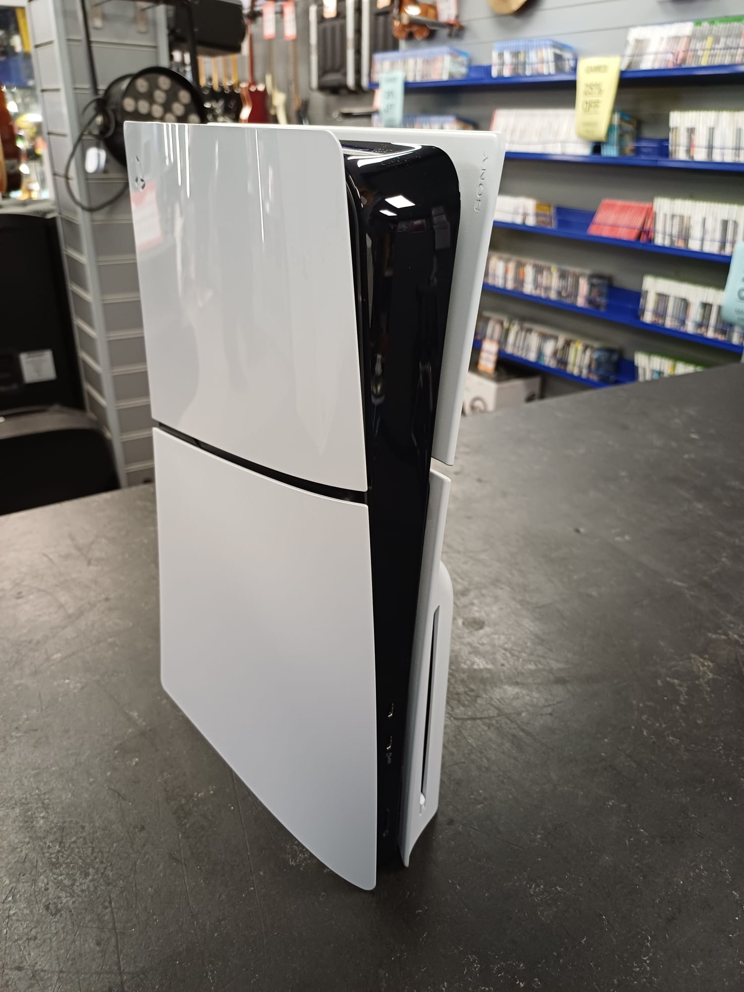 PS5 Slim Disc Edition 🎮 🔥 Next-Gen Power, Sleeker Design The new PS5 Slim with disc drive brings 4K gaming, ray tracing, and a massive game library – in a 30% smaller package. 💻 Key Features: - 4K UHD Blu-ray: Play physical games + stream movies. - Wi-Fi 6 + SSD: Fast downloads and near-instant loads. - Ray Tracing: Stunning visuals for supported games. 🔌 Connectivity: - USB-C, HDMI 2.1, 1TB SSD storage