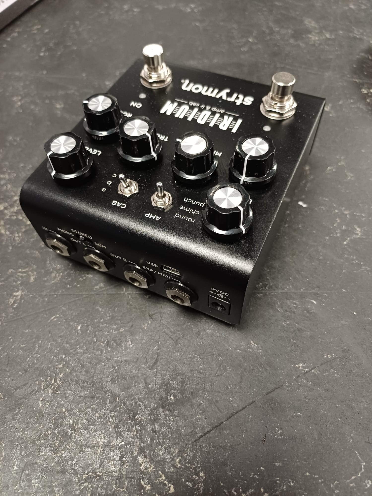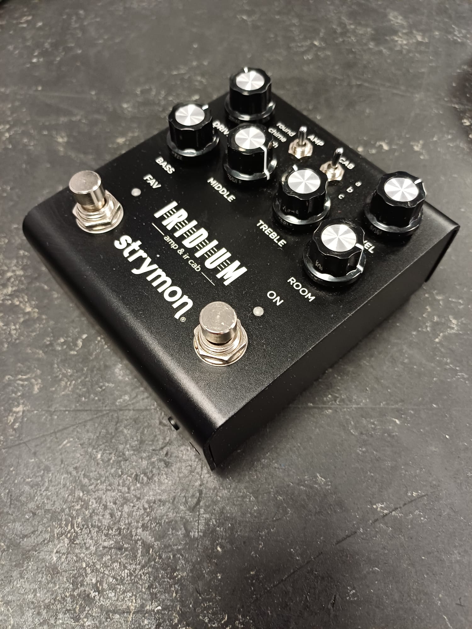 Strymon Iridium Amp & IR Cab Simulator 🎛️ Studio-Quality Amp and Cab Tones in a Compact Pedal - Three iconic amp models – choose from Round (Fender Deluxe Reverb), Chime (Vox AC30), or Punch (Marshall Plexi) for authentic tones. - High-resolution impulse response (IR) cabinet simulation – features 9 meticulously crafted cab options from industry-leading IR creators. - Simple yet powerful controls – adjust Drive, Level, and a 3-band EQ to shape your sound perfectly. - Stereo outputs – immersive soundscapes for live performance or recording. - Analog dry-through signal path – preserves your original tone while blending amp and cab simulations. 💡 Why It’s for You - Live musicians – go direct to FOH with amp-like tone, no heavy gear needed. - Recording artists – plug straight into your interface for pro-quality tracks without miking amps. - Tone chasers – explore legendary amps and cabs with unmatched realism. 🔌 Extras - MIDI control – integrate seamlessly with advanced setups for preset switching. - Headphone output – perfect for silent practice with amp and cab tones. - Compact design – pedalboard-friendly with premium build quality.