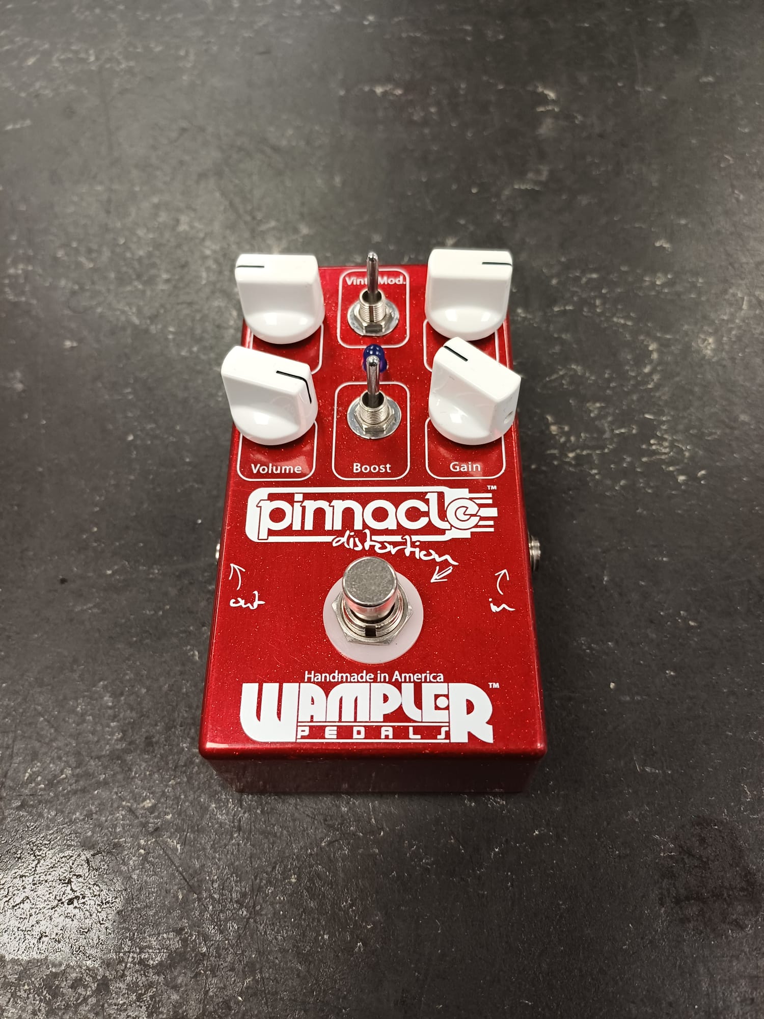 Wampler Pinnacle Distortion Pedal 🎸 Legendary British High-Gain in a Box - Authentic "Brown Sound" tones – captures the iconic British amp-inspired high-gain tones. - Highly versatile controls – adjust gain, tone, and volume to shape everything from vintage crunch to modern distortion. - Vintage/Modern switch – toggle between classic warmth and tighter, more aggressive tones. - Boost switch – adds extra gain for solos or heavier distortion. - True bypass switching – keeps your signal pristine when the pedal is off. 💡 Why It’s for You - Rock and metal players – perfect for classic rock, hard rock, and shredding leads. - Amp-like response – delivers dynamic and touch-sensitive tones that feel natural. - Pedalboard essential – compact, rugged design for gigging and recording. 🔌 Extras - Standard 9V DC power – pedalboard-friendly power requirements. - Hand-built in the USA – premium quality and attention to detail.