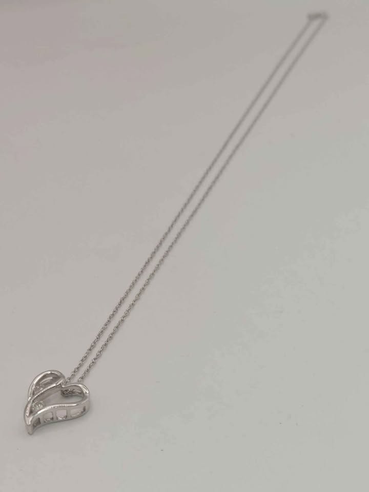 (10K Hallmarked&Tested) White Gold Necklace With Heart Pendant, Weight: 2.1G, 18" In Length