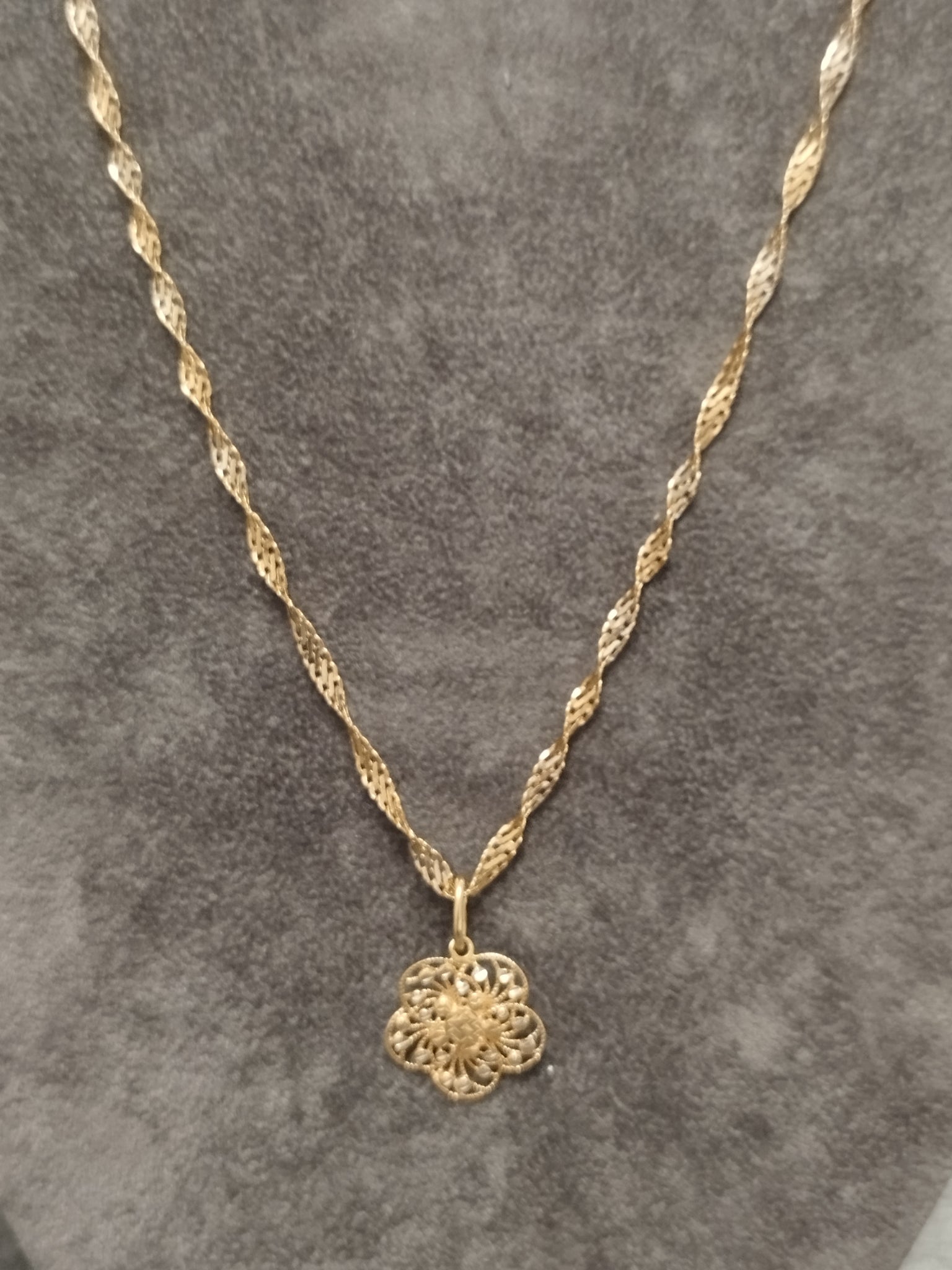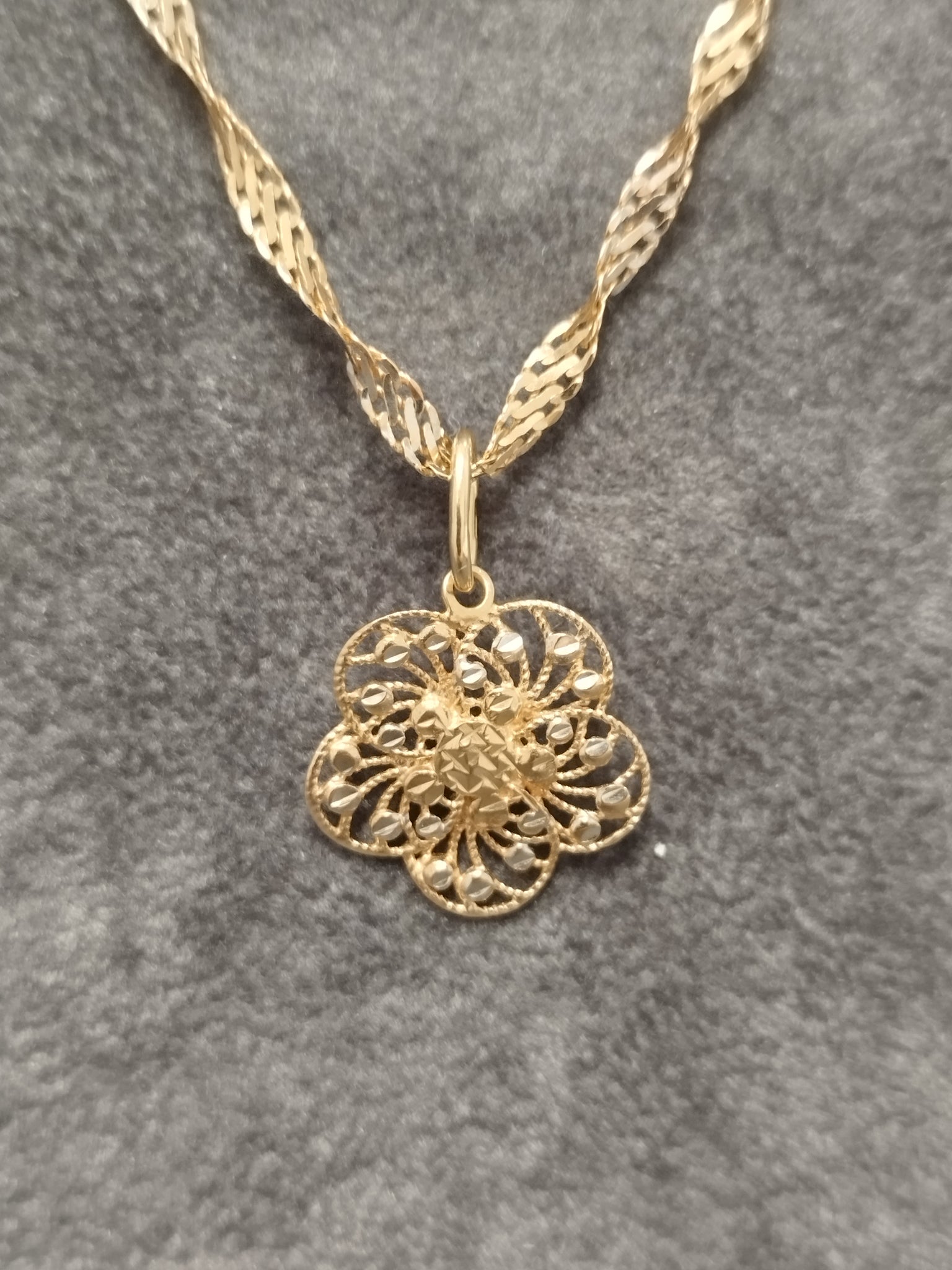 | Information | 14ct Gold Singapore Chain & Flower Pendant |