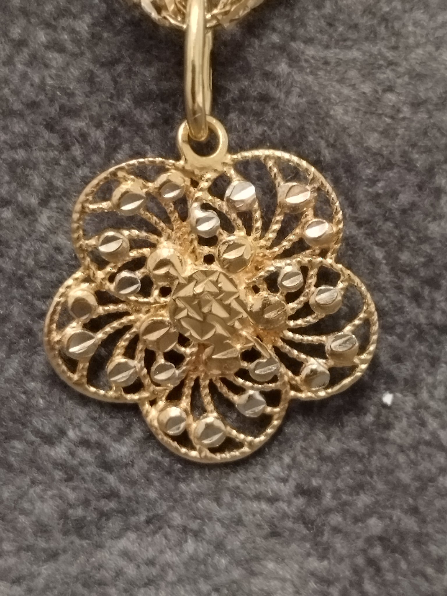 14ct Yellow & White Gold Singapore Chain & Filigree Flower Pendant