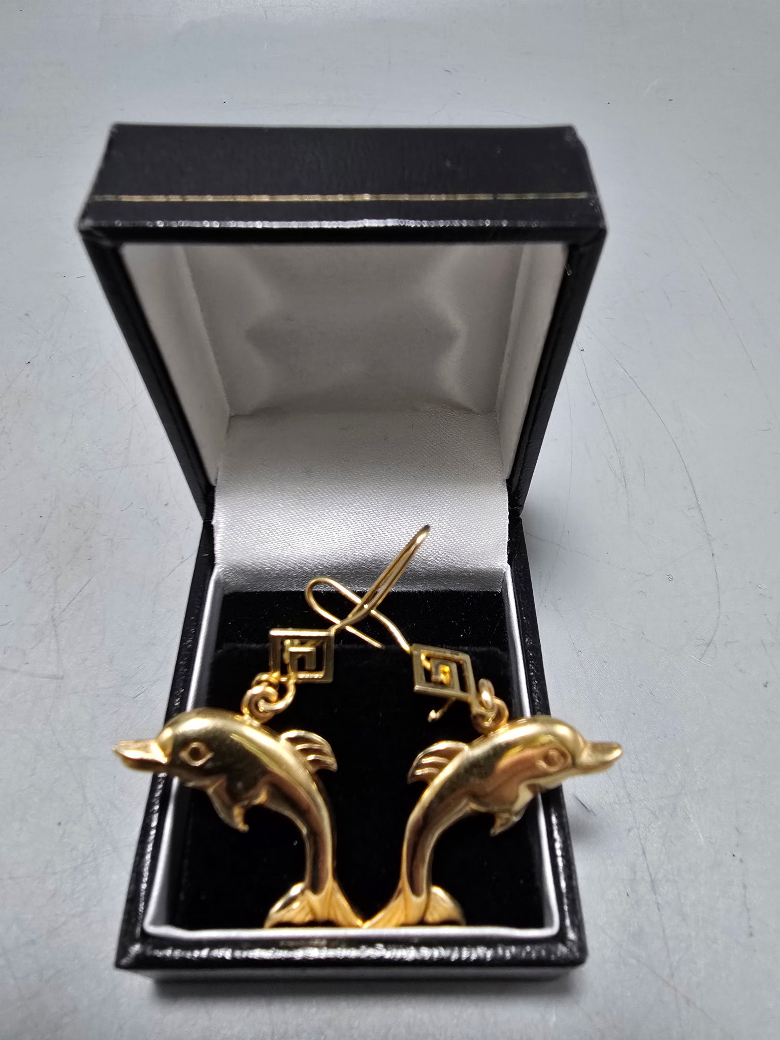 14ct GOLD Dolphin Earrings 5.8G 585 1.5'' in Length ITEM HAS BEEN CLEANED AND POLISHED TO A HIGH STANDARD
