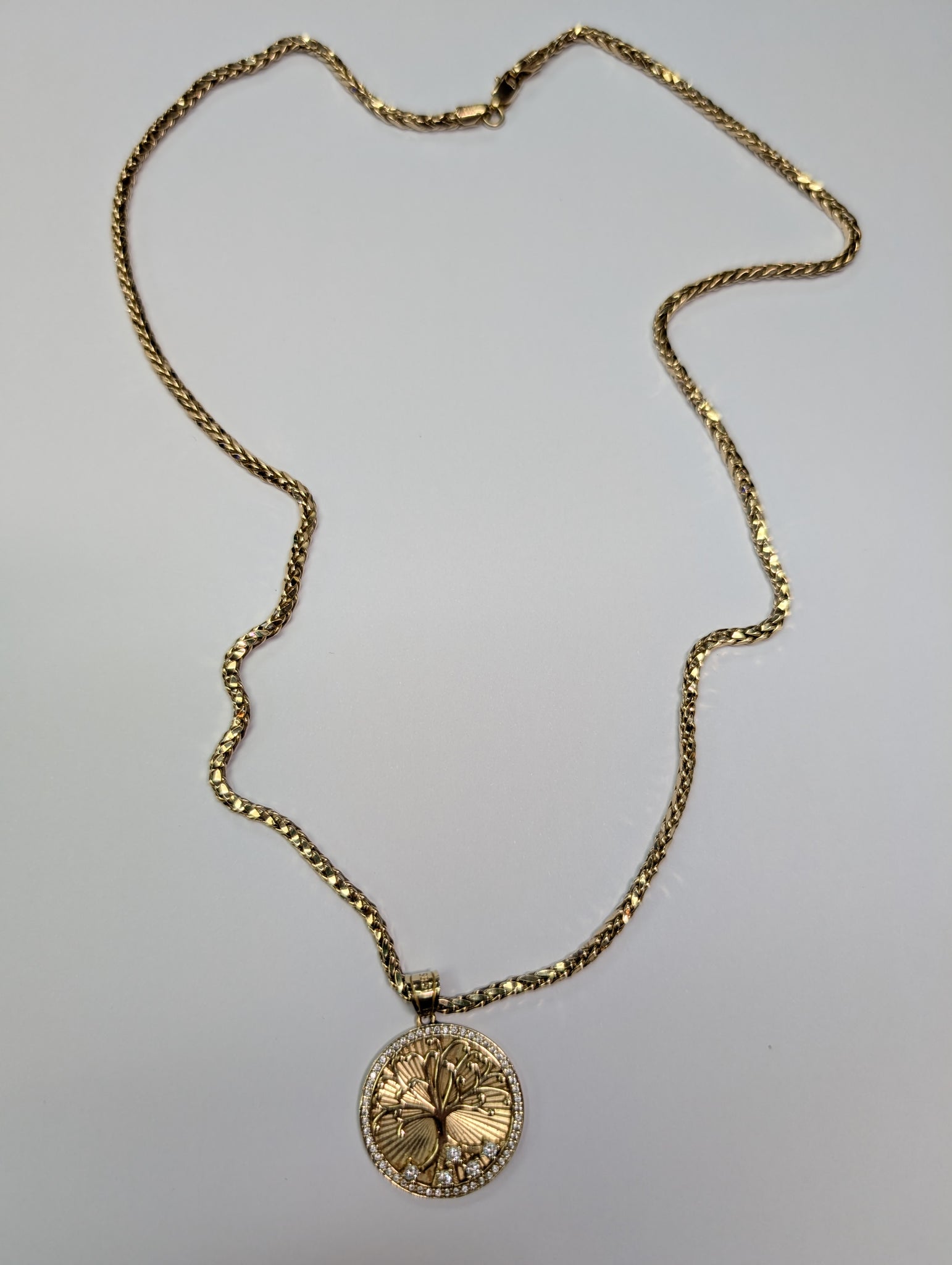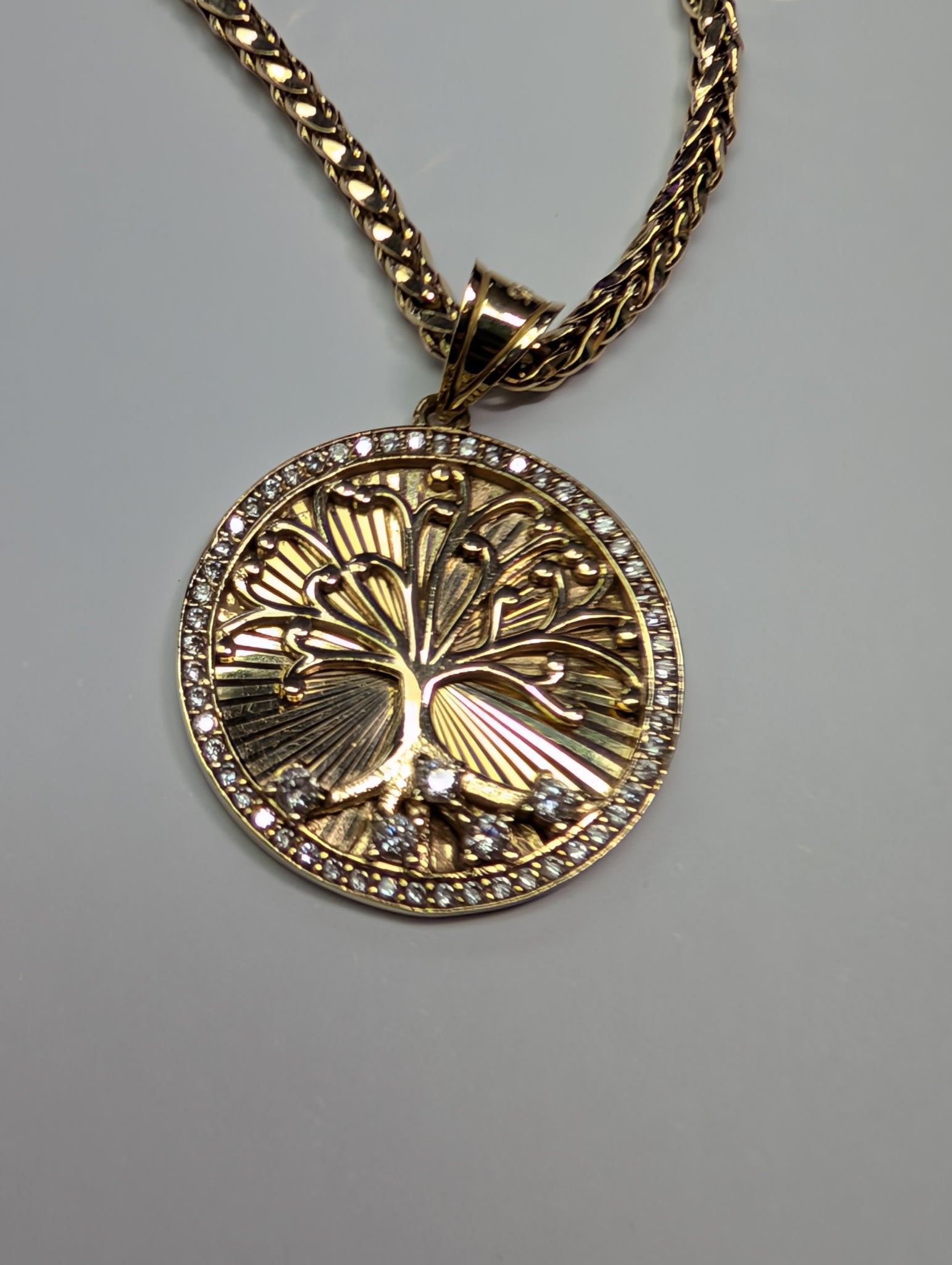 HERE WE HAVE A 14CT GOLD ROPE CHAIN WITH A 14CT GOLD TREE OF LIFE PENDANT. THIS WEIGHS 11.40G AND THE CHAIN IS 22" LONG. ** FOR ANY QUERIES PLEASE CALL OUR PRESTON STORE DIRECT MON-SAT 01772 204889