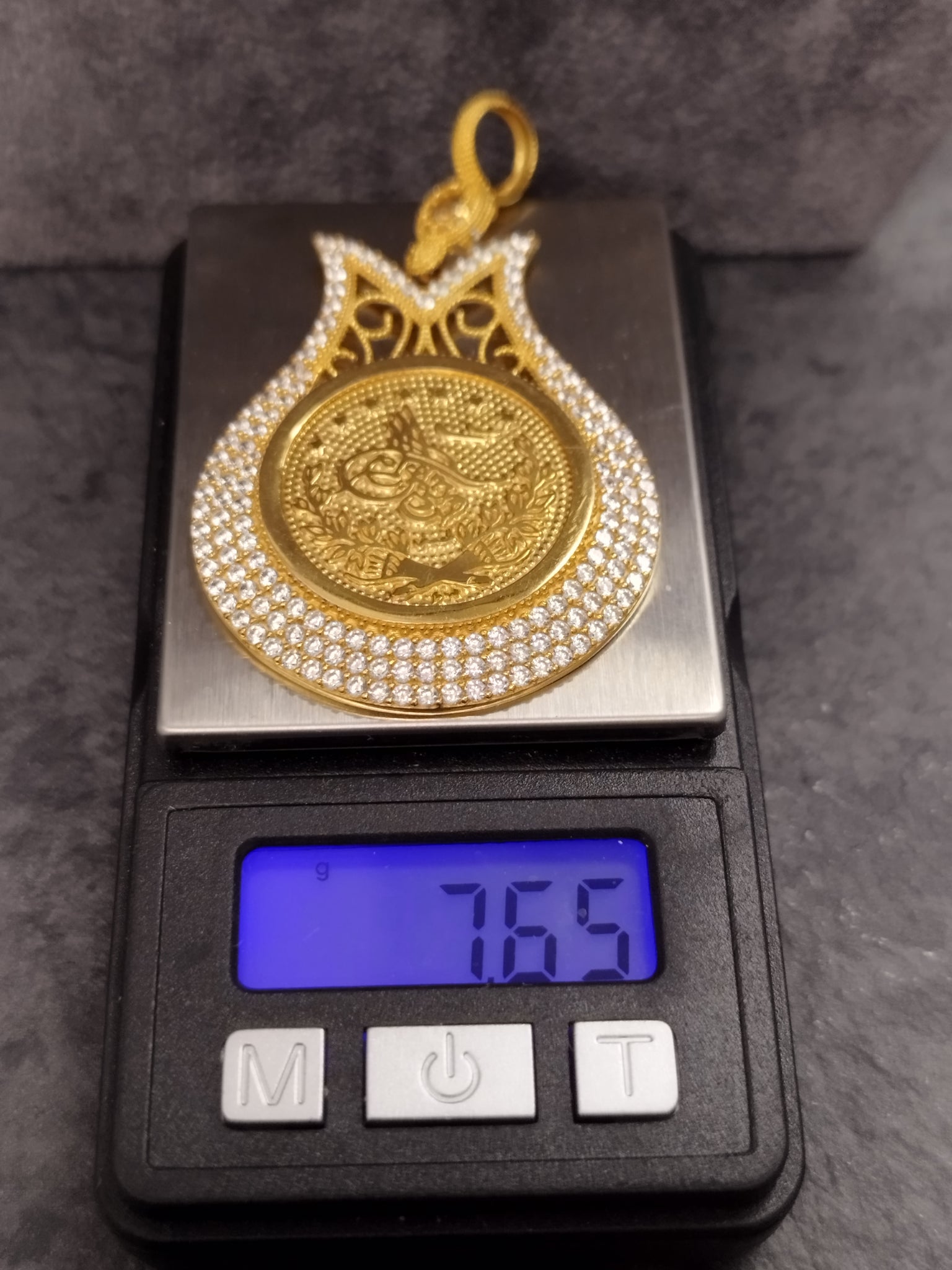 Information 14ct Gold "tugra" Pendant set with Clear Stones