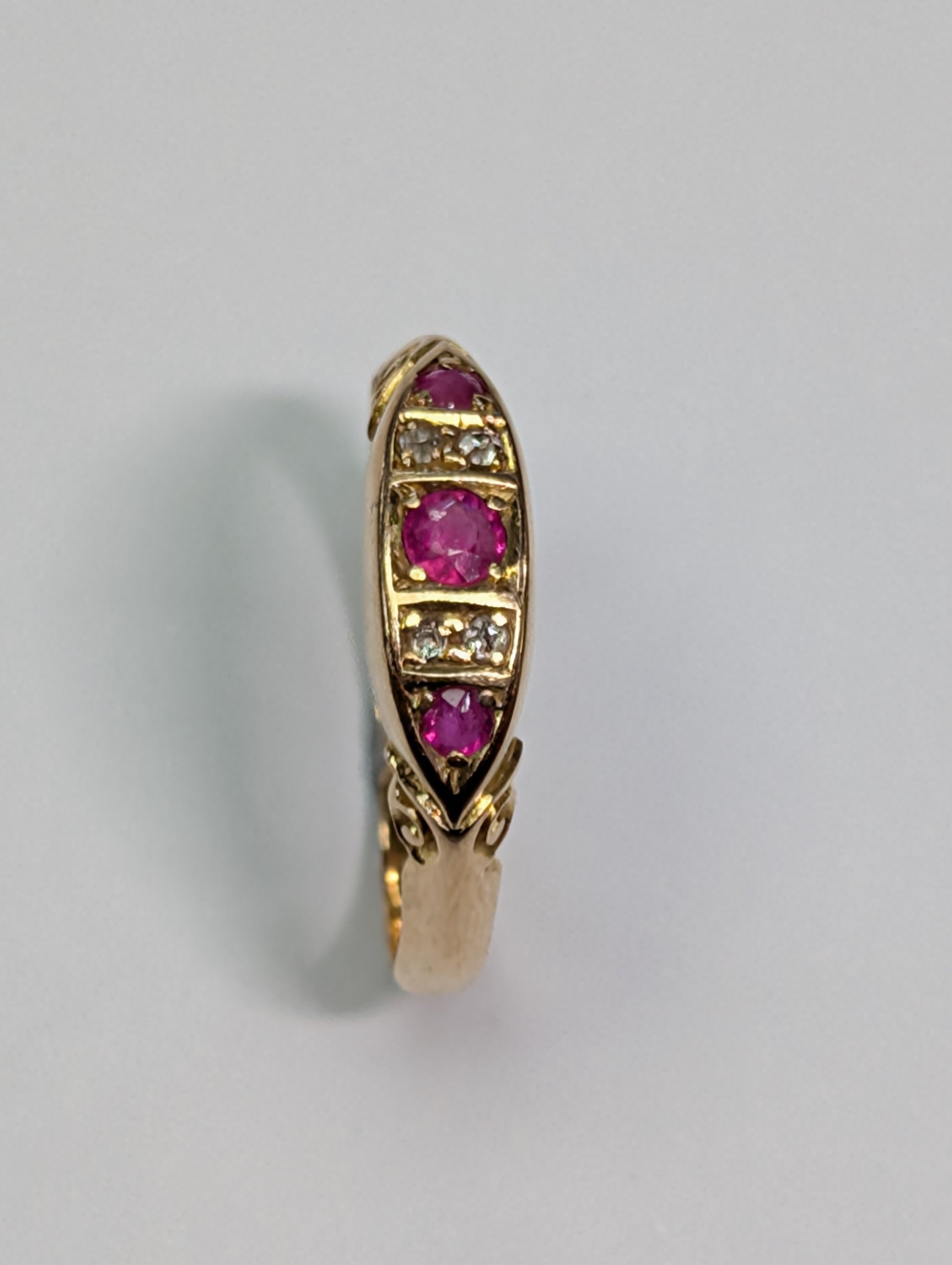 HERE WE HAVE A 18CT GOLD DIAMOND & PINKY RED STONE RING. THIS IS A SIZE O AND WEIGHS 2.80G ** FOR ANY QUERIES PLEASE CALL OUR PRESTON STORE DIRECT MON-SAT 01772 204889