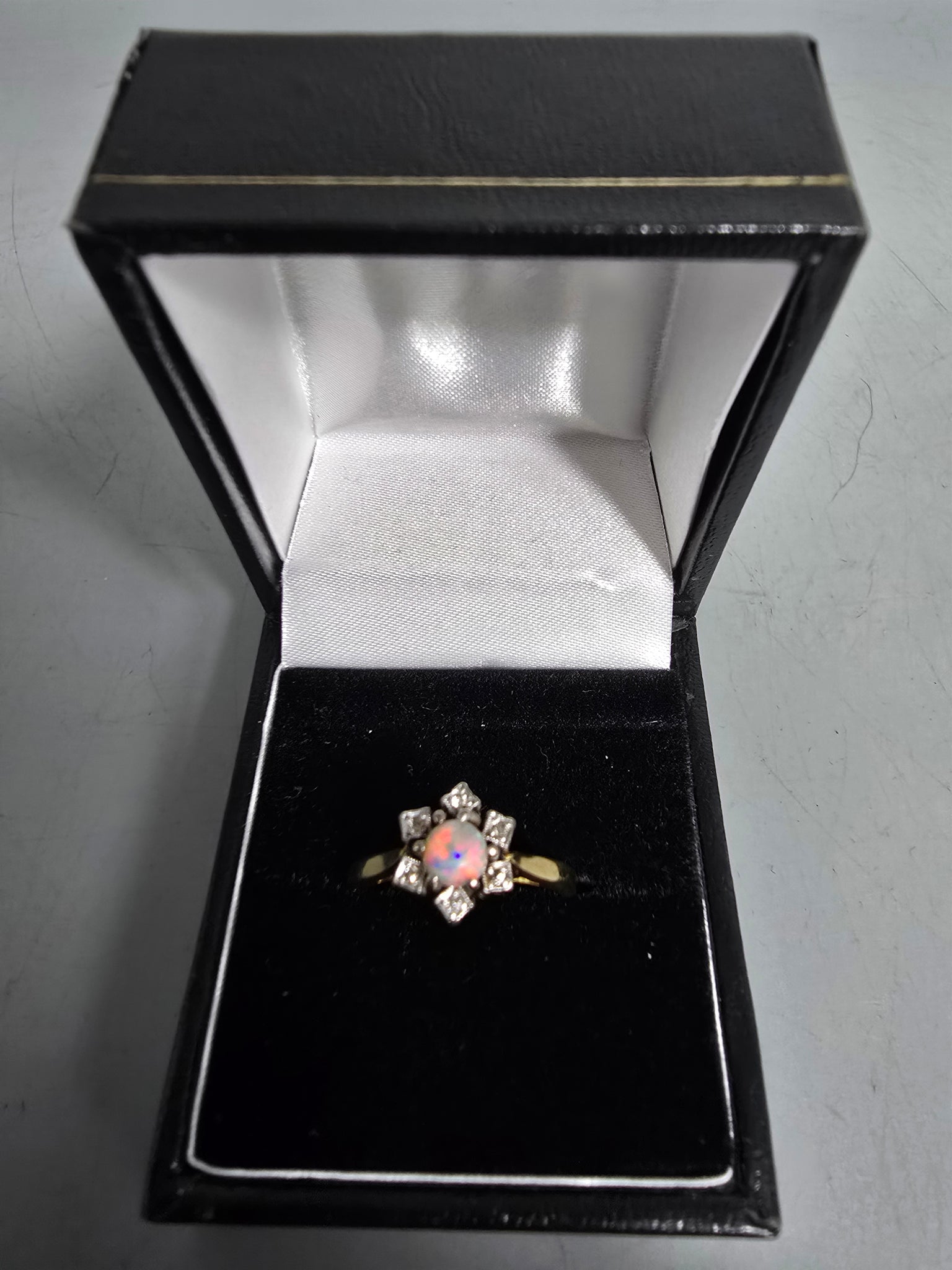 18CT Gold Ring 4G 375 With Flower Shape Stones 750 Size L ITEM HAS BEEN CLEANED AND POLISHED TO A HIGH STANDARD