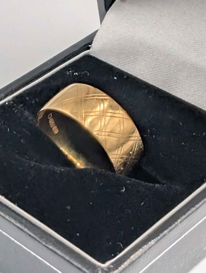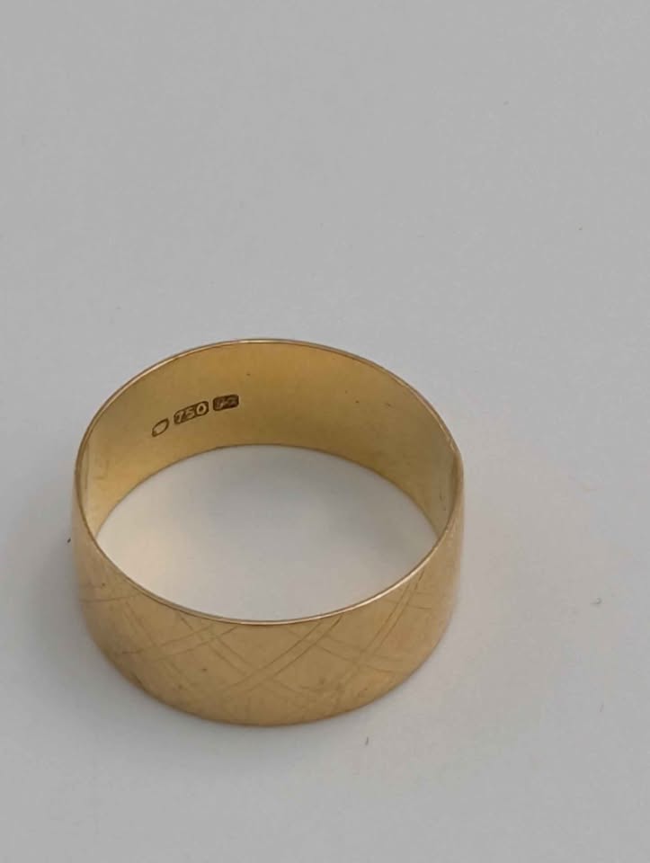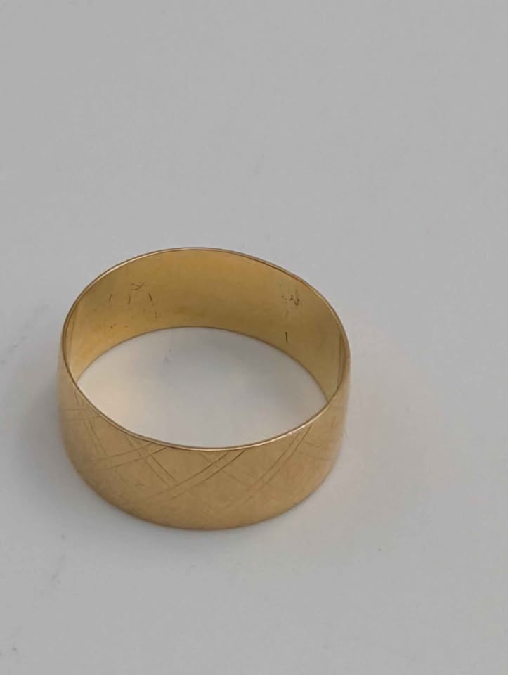18ct Yellow Gold Patterned Wedding Band Ring - 3.49 Grams - Size O