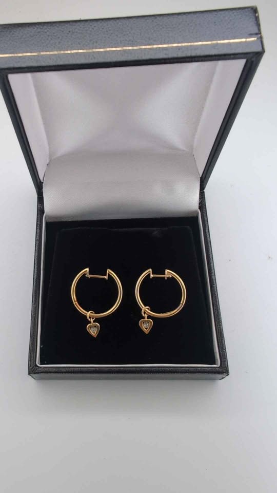 18ct Yellow Gold Sundance Hoop Earrings With CZ Heart Stone - 2.20 Grams