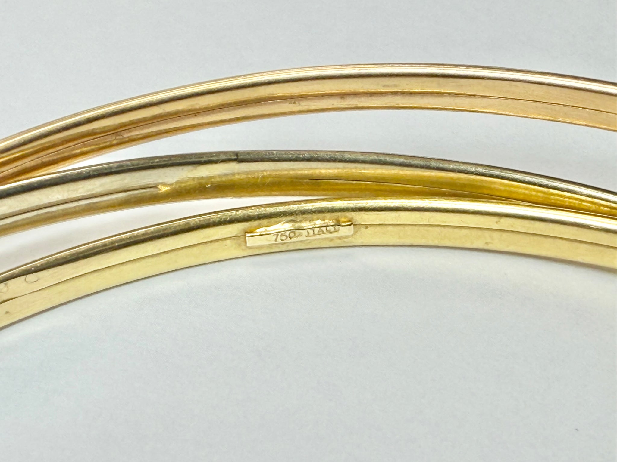 18ct yellow/white/rose gold interlinked trio bangles