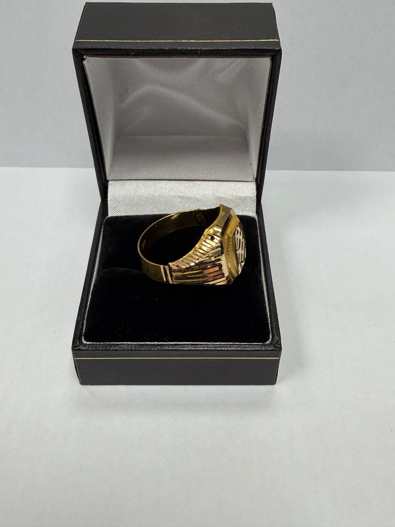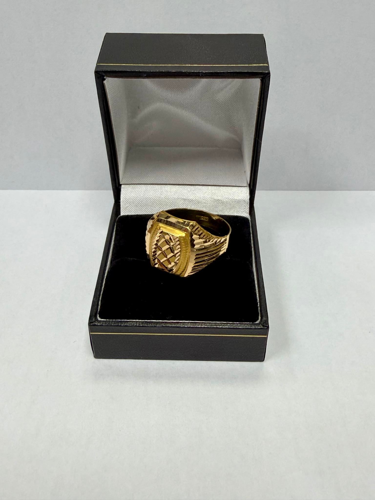 A 21ct gold ring that comes in a size x, which weighs 5.8 grams. The ring has a hallmark stamp on it. It has been professionally cleaned and polished. Boxed - Delivery or Collection **Click and Collect from the Handsworth Branch**