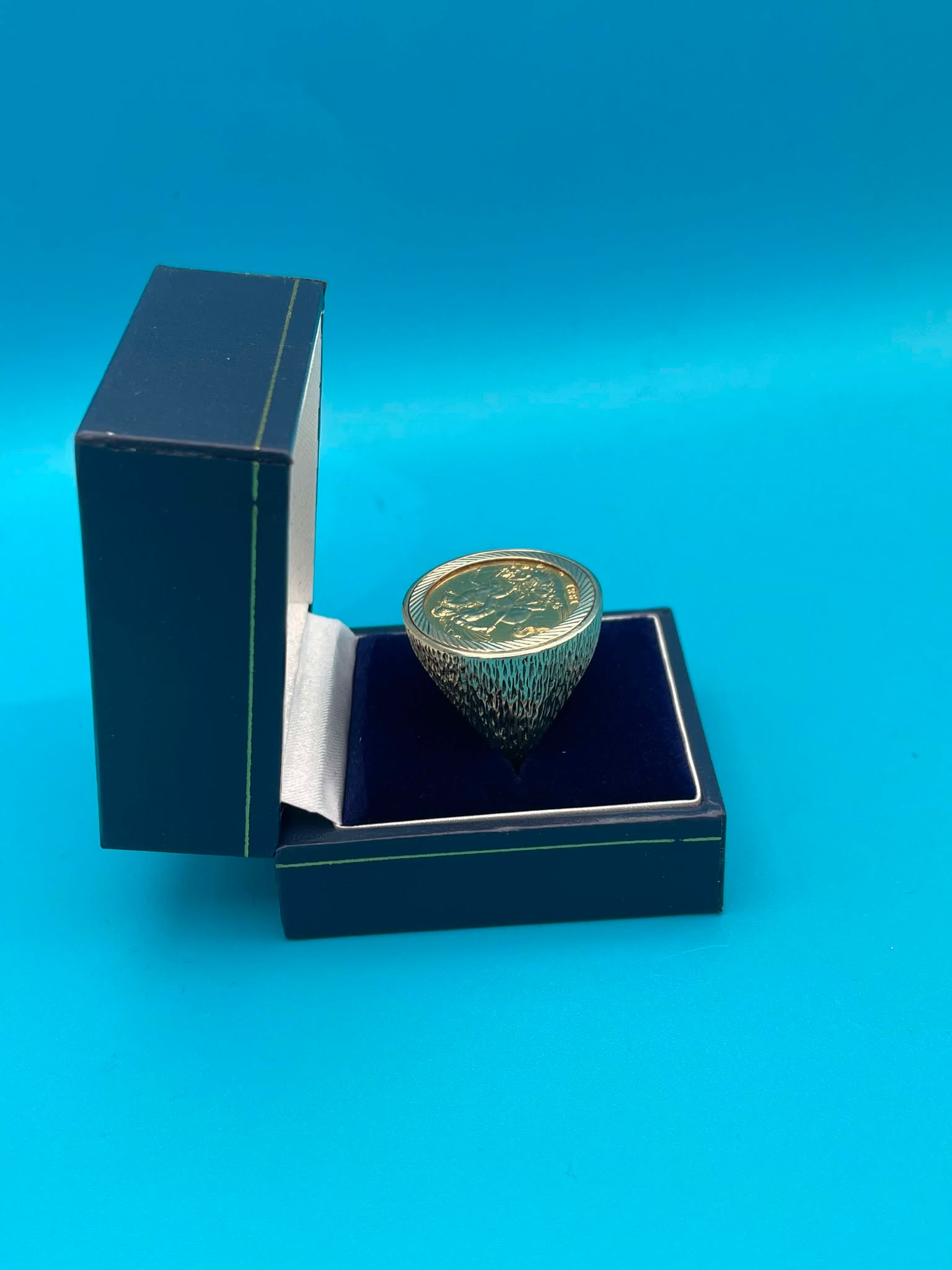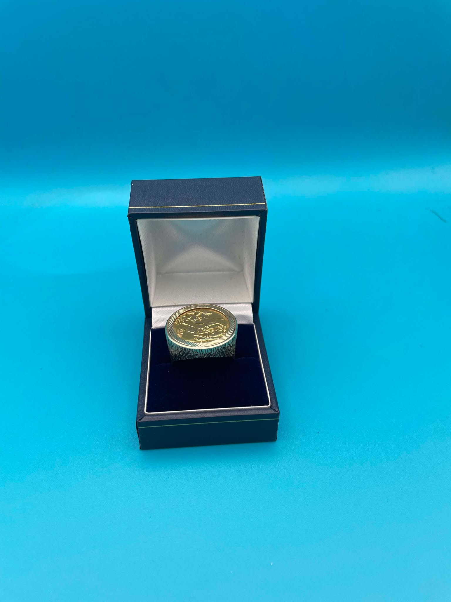 22ct gold ring sovereign 9ct mount approx weight: 14.7g good condition boxed date - 1981 Size U