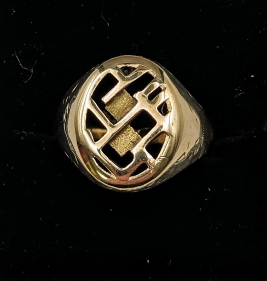 ITEM HAS CLEAR SLIGHS OF USE IN THE FORM OF SCRATCHS NEAR THE PATTERN OF THE RING AND LIGHT SCRATCHS ON THE BAND OF THE RING, PLEASE SEE PHOTOS