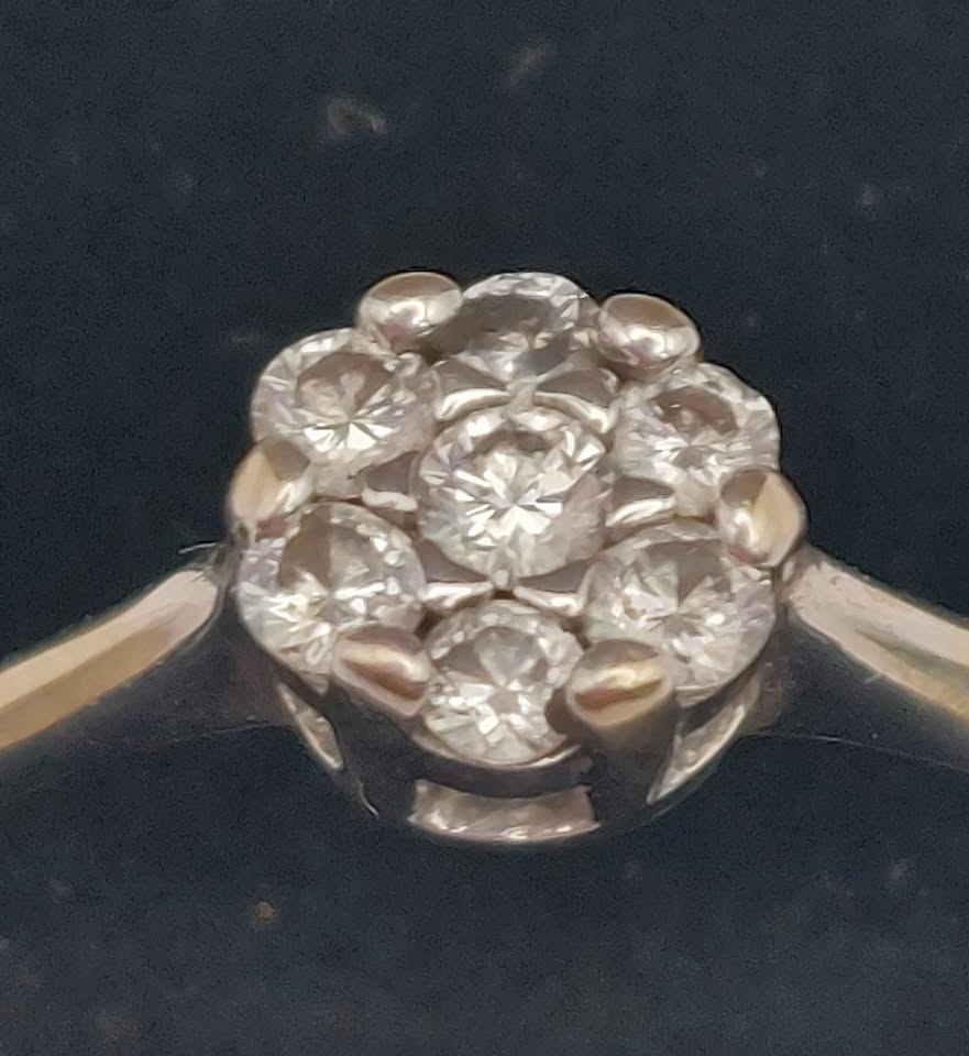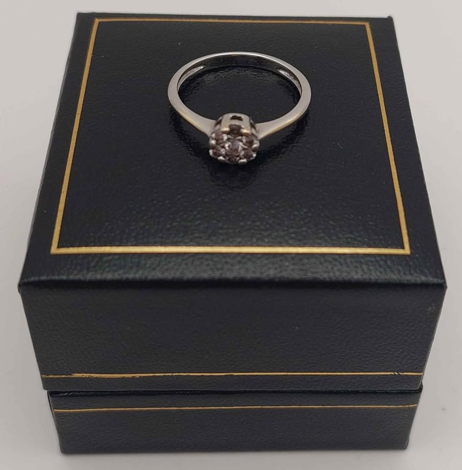 750 18ct White Gold ring with clear stones 2.14g size L Boxed