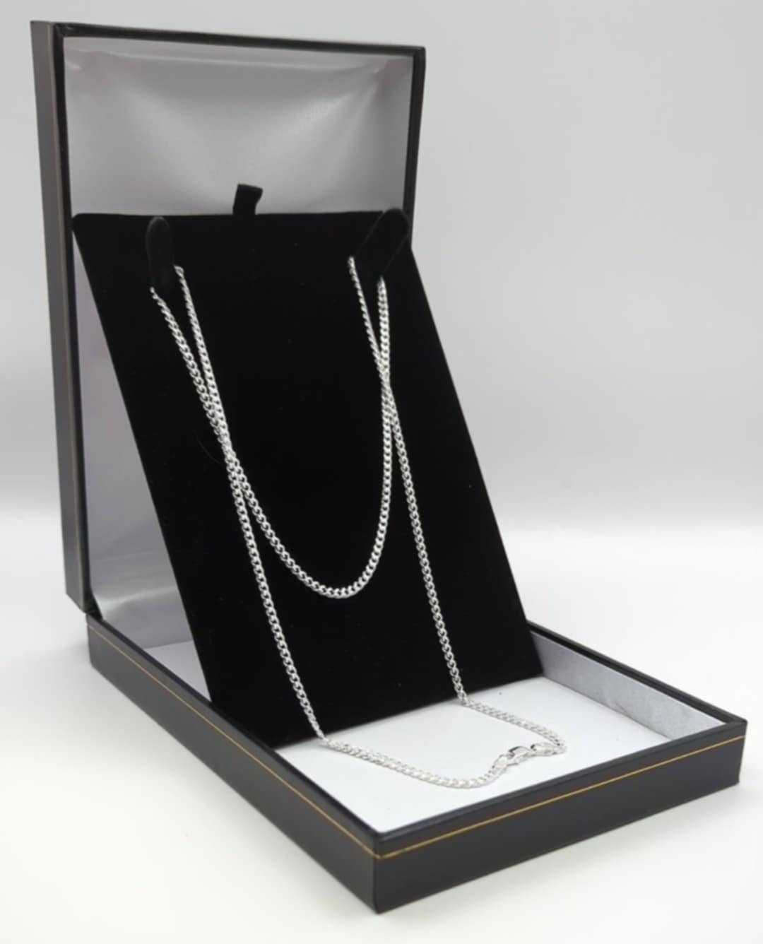 925 SILVER CHAIN, SMALL CURBED W/ LOBSTER LOCK, 24", 11.09G *!BRAND NEW!* Item is in wearable condition and free from and major or serious warping, however as it is pre owned there may be some signs of use, this may include light scratch's, please see photos Harpurhey store
