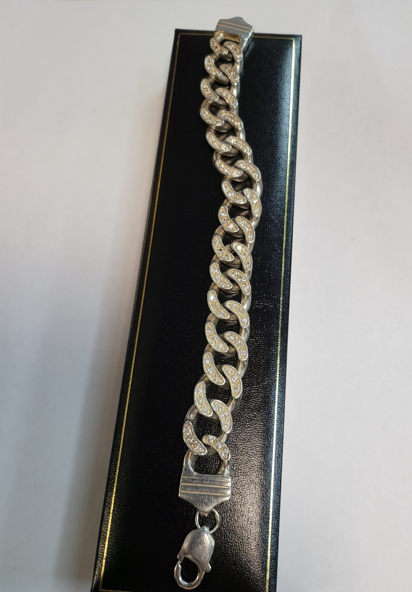 925 Silver Curb Link Bracelet with Clear Stones - approx. 9" - 60g