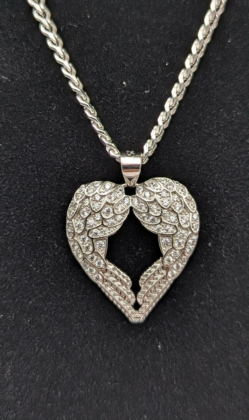 925 SILVER HALLMARKED, WINGS SHAPPED HEART PENDANT ON A BASIC CURBED CHAIN, 18", 13.71G *BRAND NEW* ITEM IS BRAND NEW AND NEVER BEEN WORN BEFORE HARPURHEY STORE