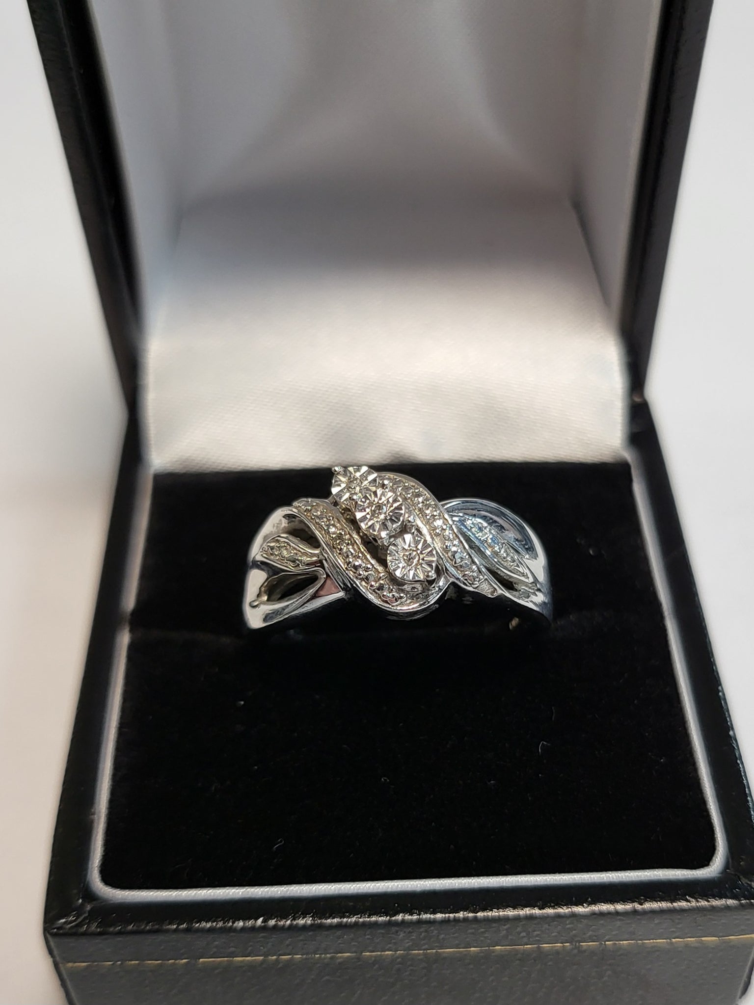 925 Silver Ring with Clear Stones (stamped DIA) - Size O - 4.4g