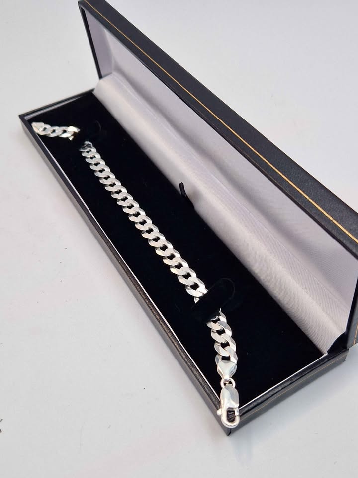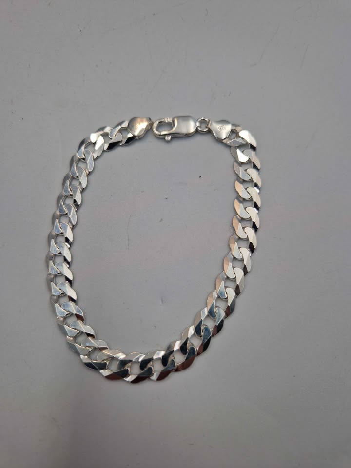 925 Sterling Silver Curb Bracelet - 9" Long - 14.80 Grams - 7mm Wide **BRAND NEW**