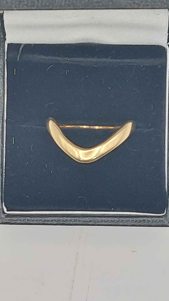 9CT 375 HALLMARKED, YELLOW GOLD, RING WITH SHAPED DESIGN. SIZE Q/8, 4.5G, BOXED Item is in full wearable condition with no major warping to the item, However as it is a pre owned item some signs of use may be visible, such a light scratch's, please see photos Harpurhey store