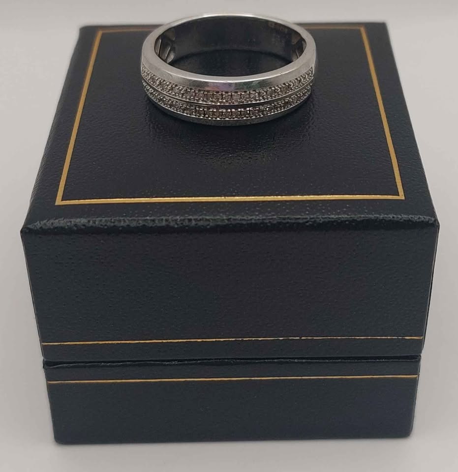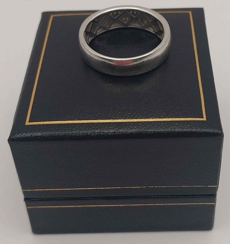 9ct 375 white gold ring 5.8g size U Boxed hallmarked