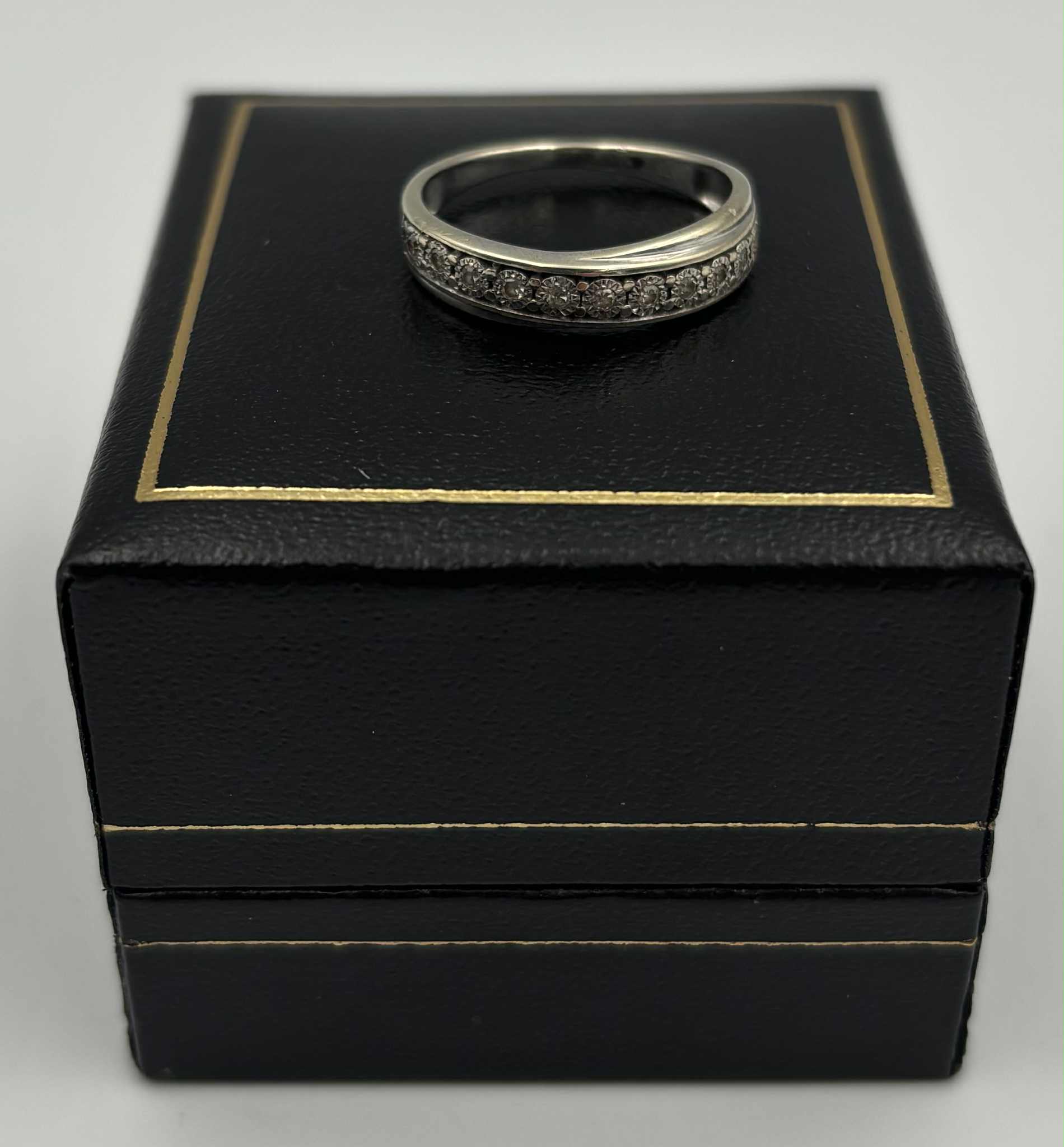 9ct 375 white gold with stones 2.3g size M