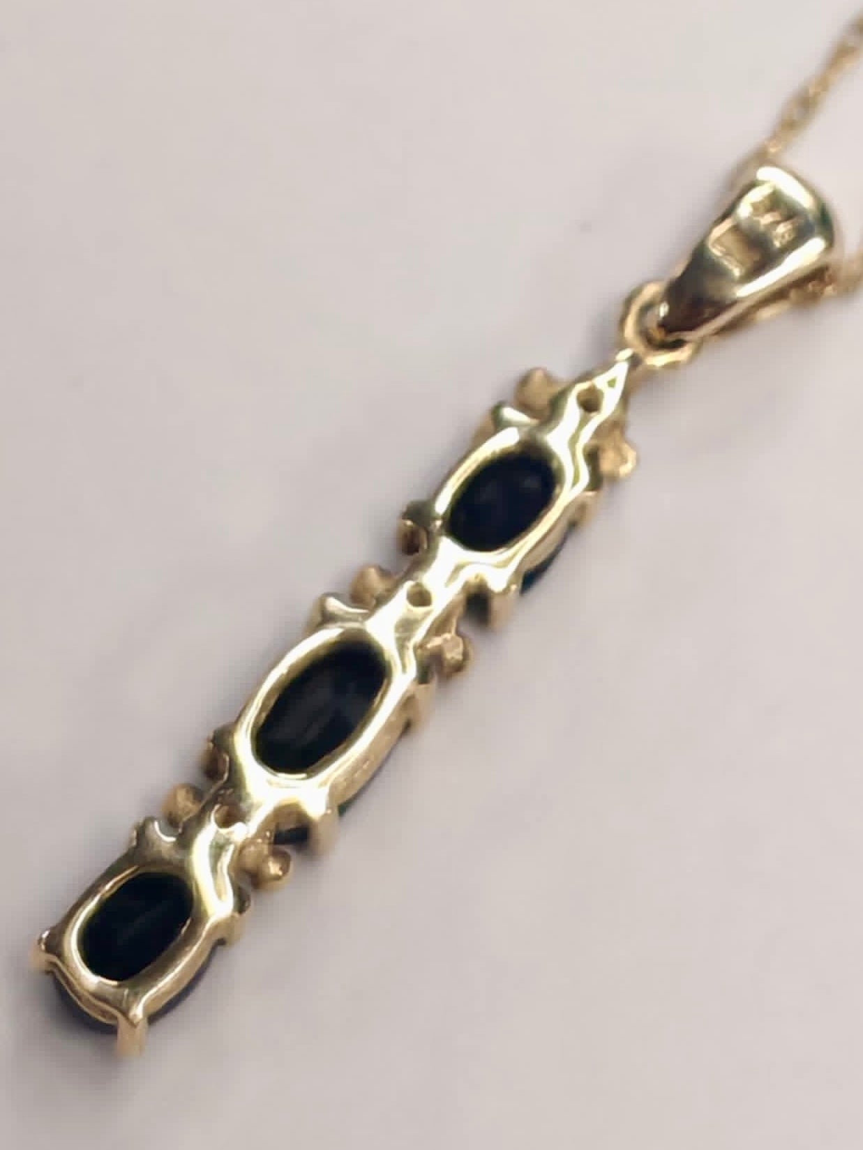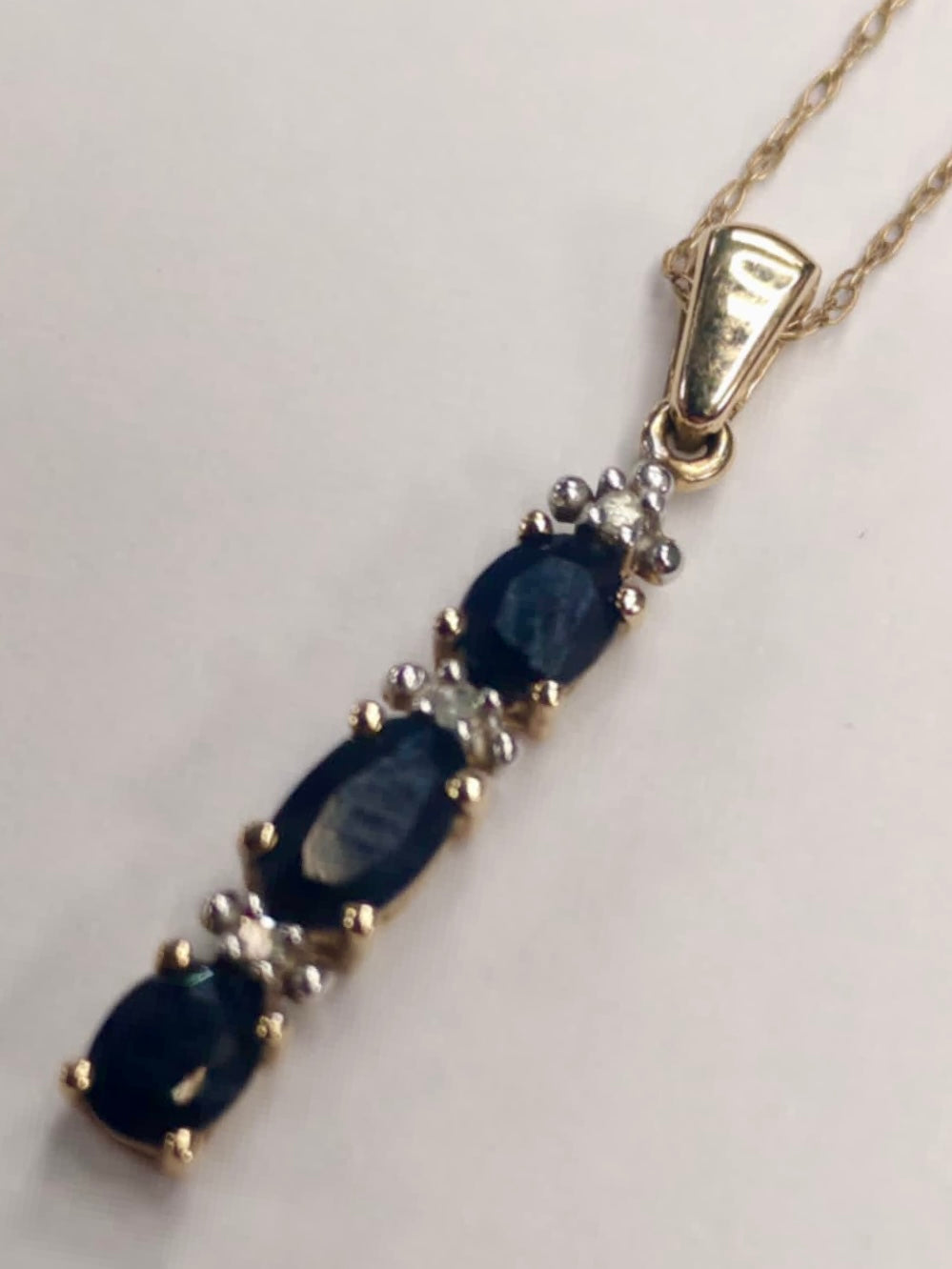 9ct Gold Necklace with Diamond and Sapphire Pendant 18”