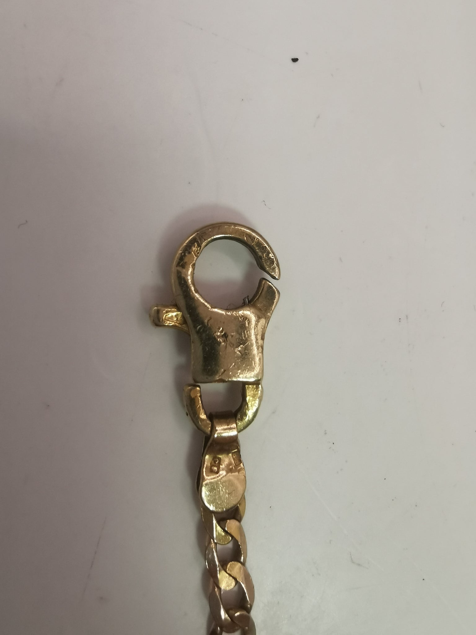 pre owned item in good condition just damaged on the clasp but still closes item is hallmarked and has been tested