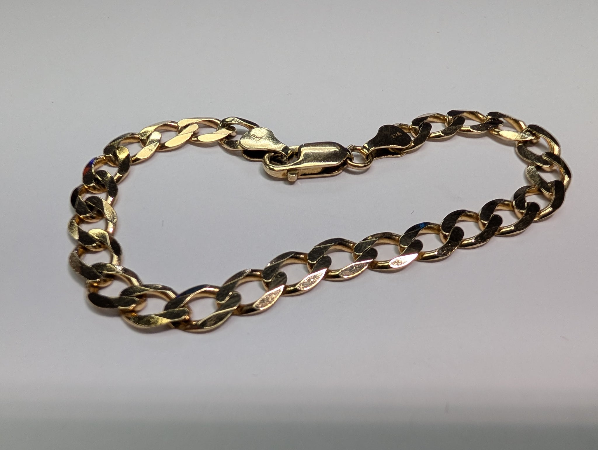HERE WE HAVE A 9CT GOLD CURB BRACELET WEIGHING 7.81G. THIS MEASURES JUST OVER 7" LONG WHEN UNFASTENED. ** FOR ANY QUERIES PLEASE CALL OUR PRESTON STORE DIRECT MON-SAT 01772 204889