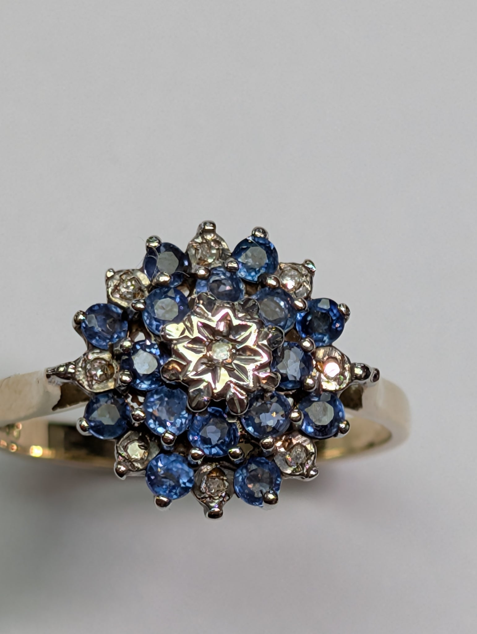 HERE WE HAVE A 9CT GOLD DIAMOND & BLUE STONE RING. THIS WEIGHS 3.03G AND A SIZE Q. ** FOR ANY QUERIES PLEASE CALL OUR PRESTON STORE DIRECT MON-SAT 01772 204899