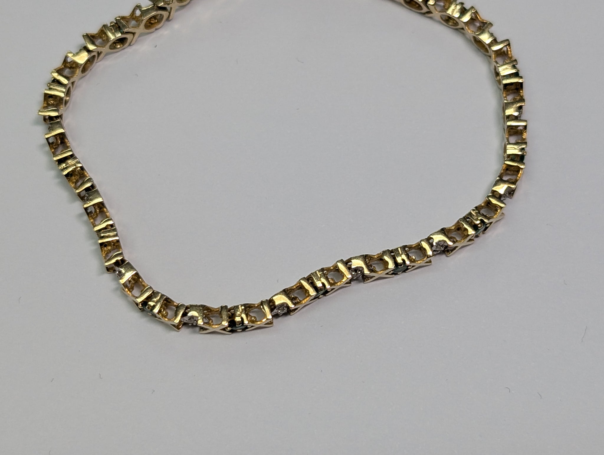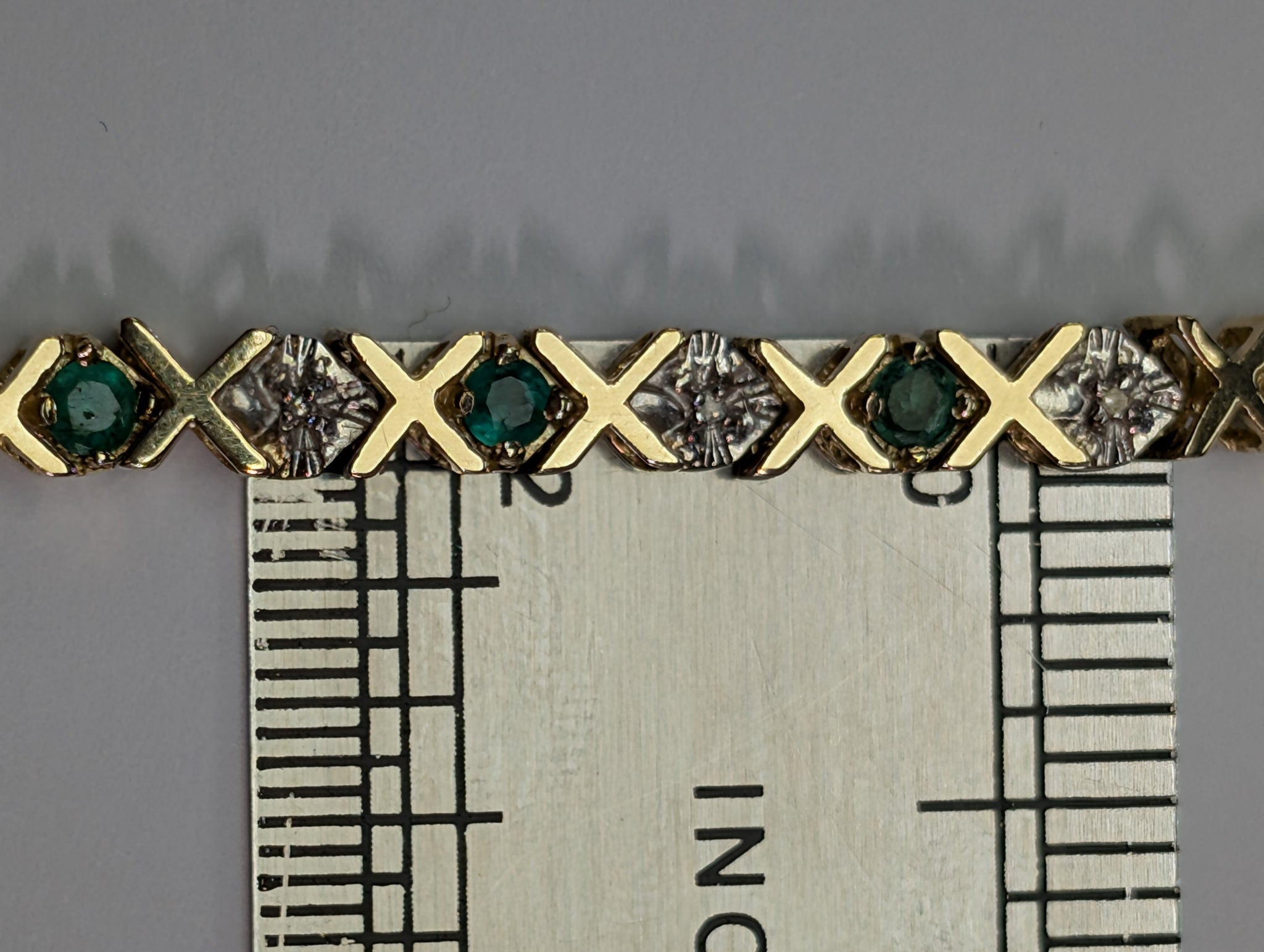 HERE WE HAVE A 9CT GOLD DIAMOND & EMERALD BRACELET. THIS WEIGHS. 7.67G AND MEASURES 7" LONG. "" FOR ANY QUERIES PLEASE CALL OUR PRESTON STORE DIRECT MON-SAT 01772 204889
