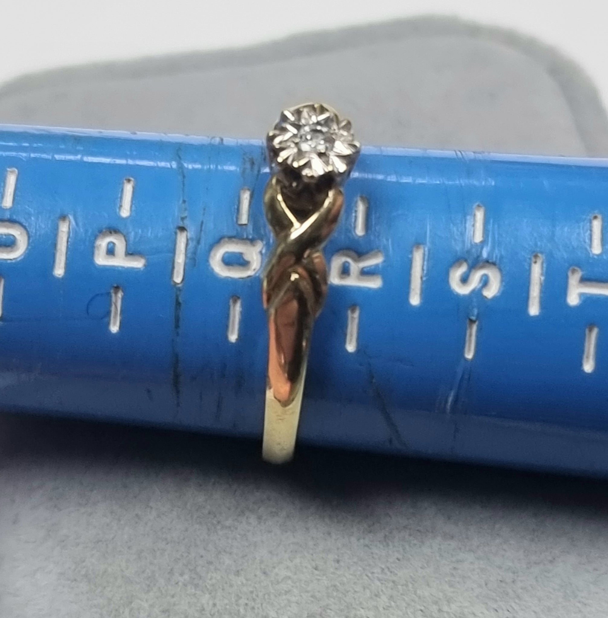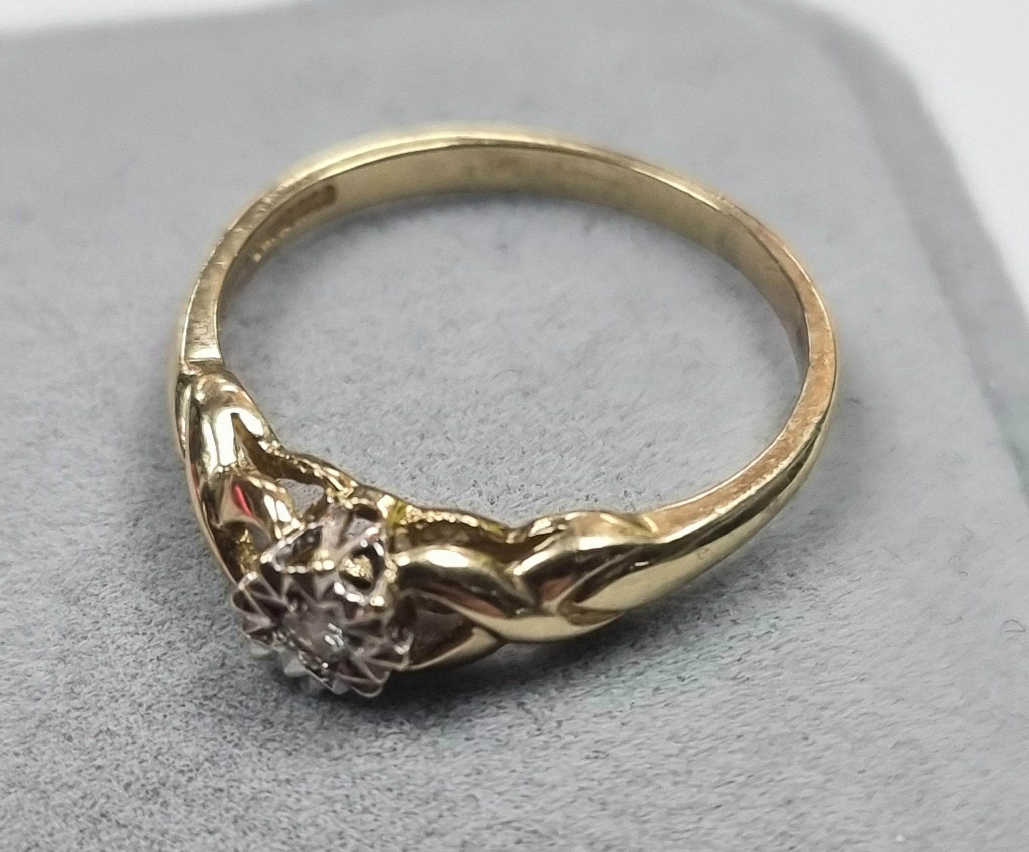 a very nice 9ct ring with a single diamond in a size Q1/2 weighing 2.23 grams