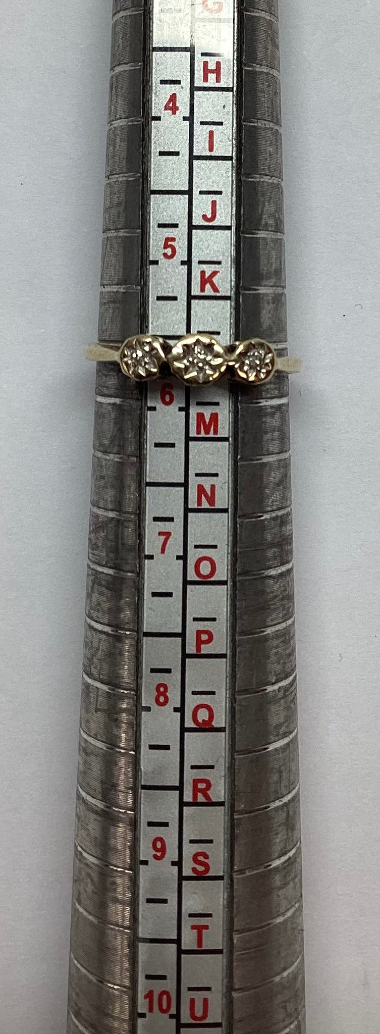 9CT gold ring with approximately 0.15 CT diamond sized “L” weighing 1.3g
