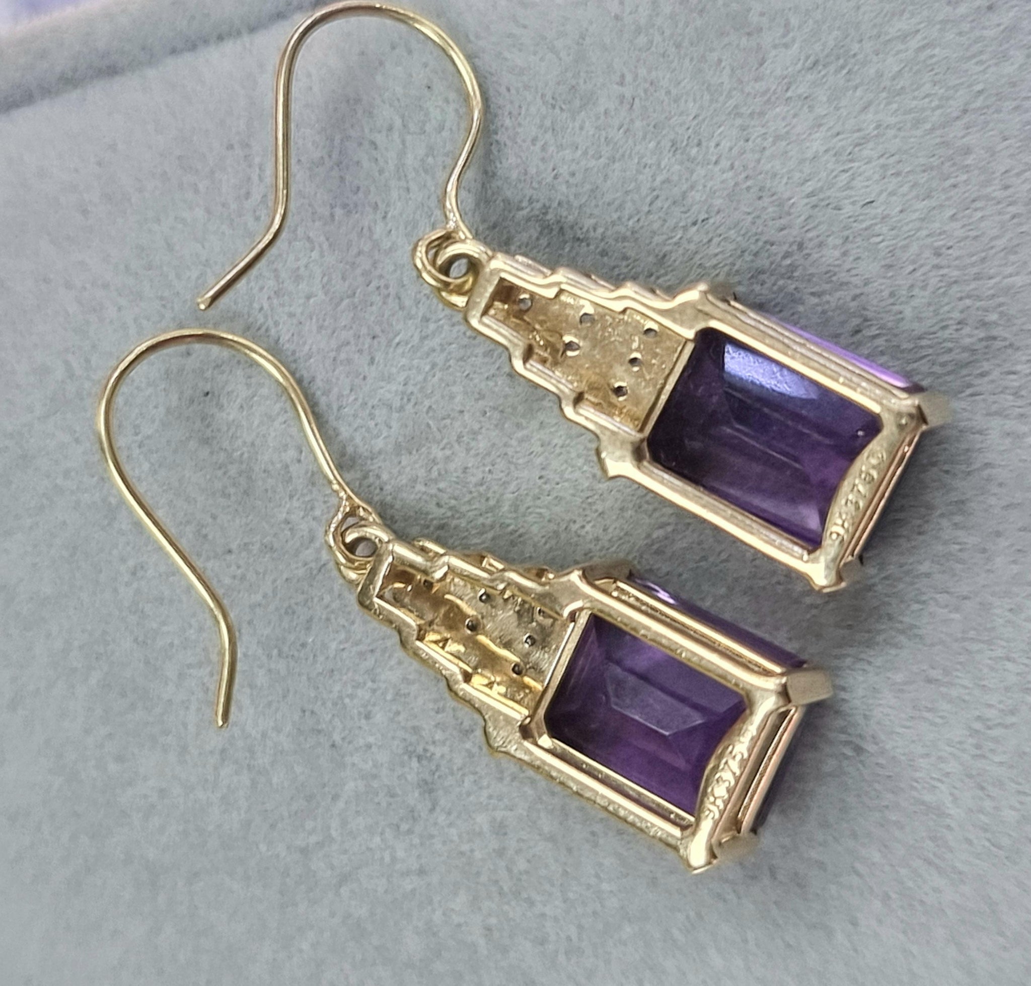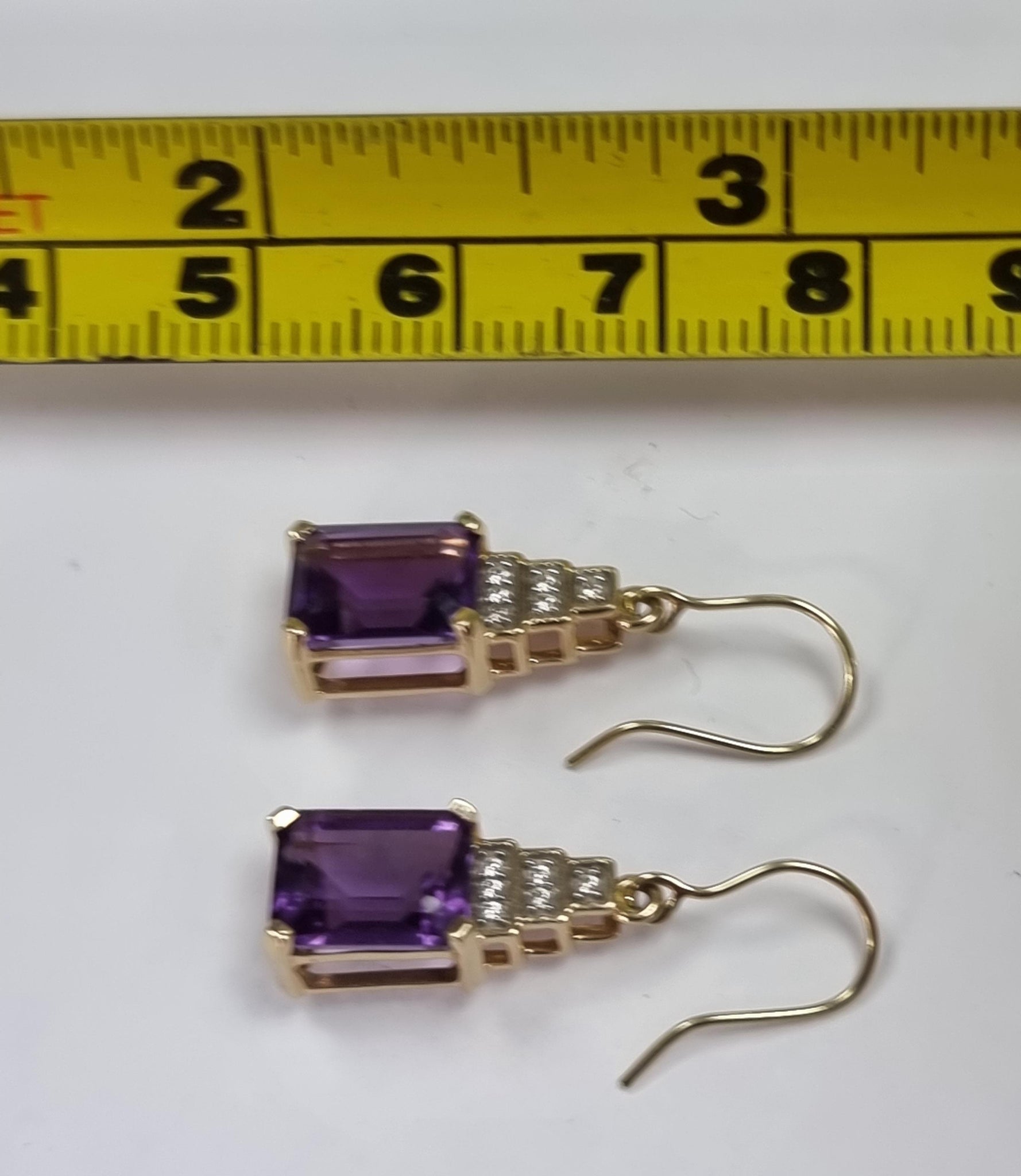A beautiful pair of 9ct gold earrings with clear and purple stone weighing 2.90 grams